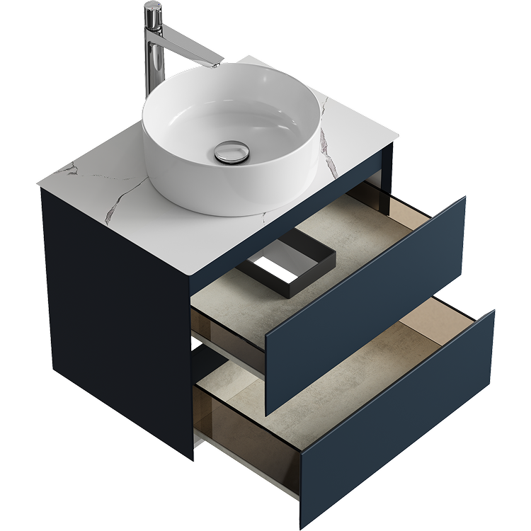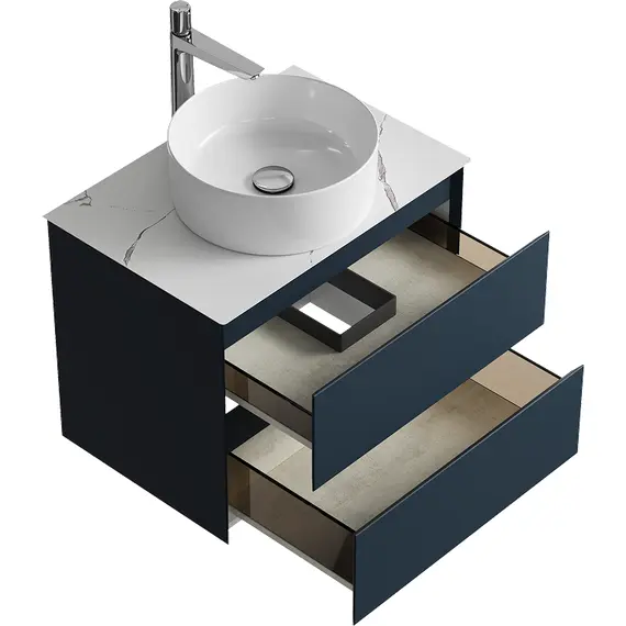 Подвесная тумба с двумя ящиками AQWELLA 65 см, цвет серый со столешницей мрамор белый