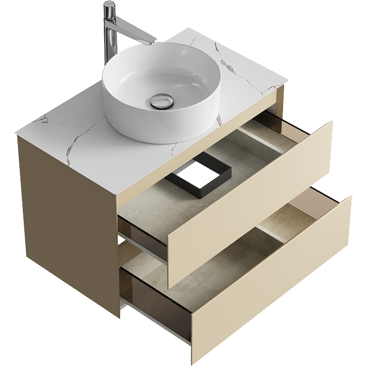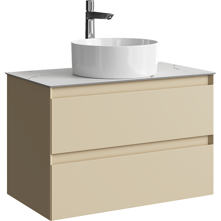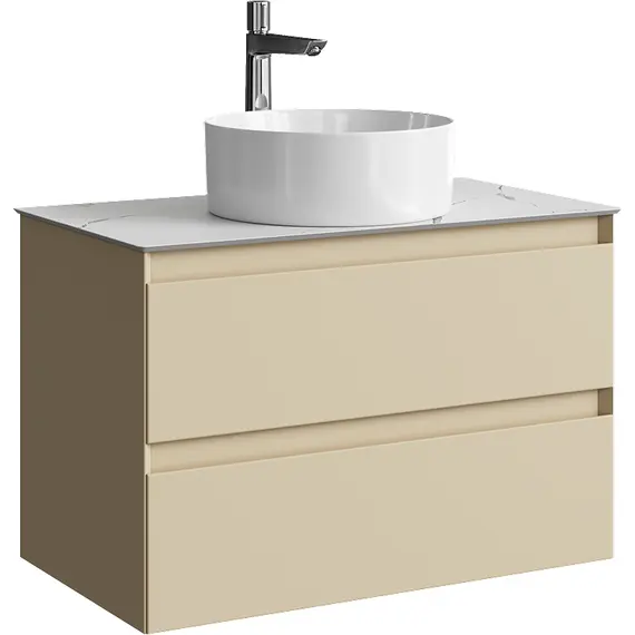 Подвесная тумба с двумя ящиками AQWELLA 81 см, цвет морская дюна со столешницей мрамор белый