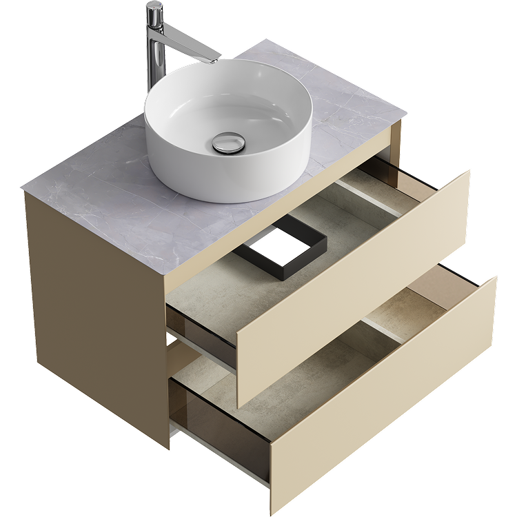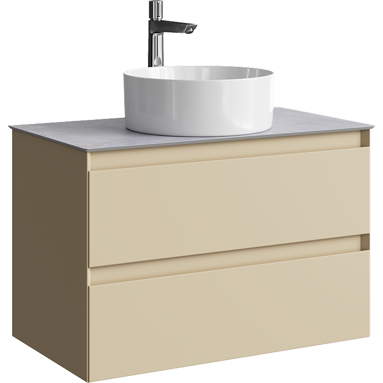 Подвесная тумба с двумя ящиками AQWELLA 81 см, цвет морская дюна со столешницей серый камень