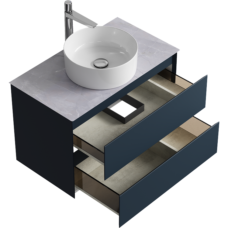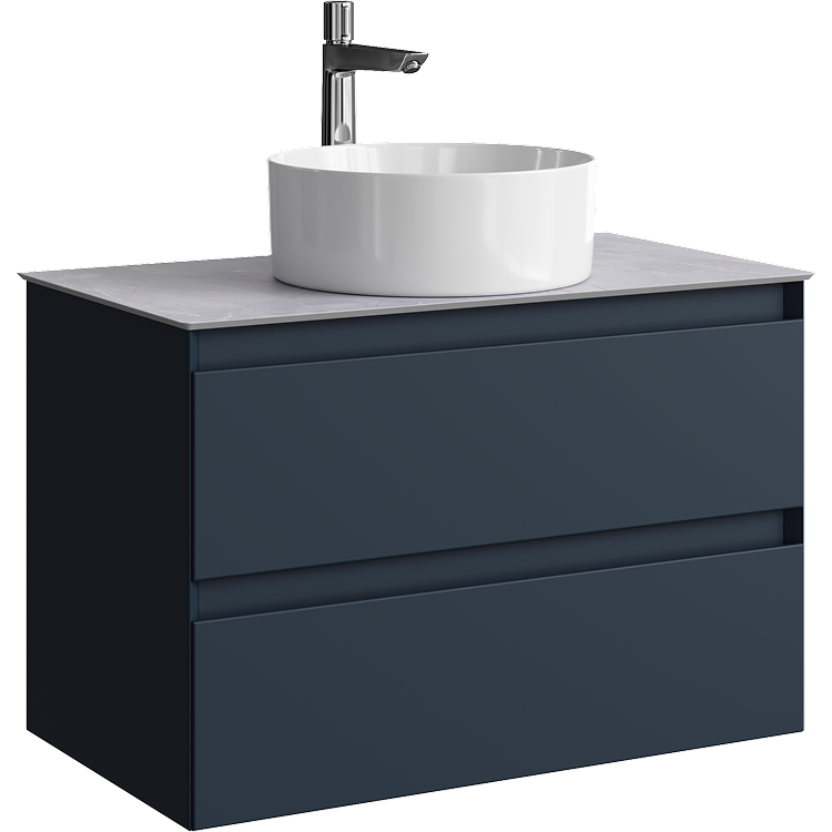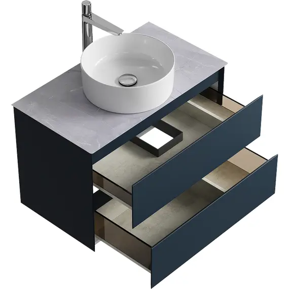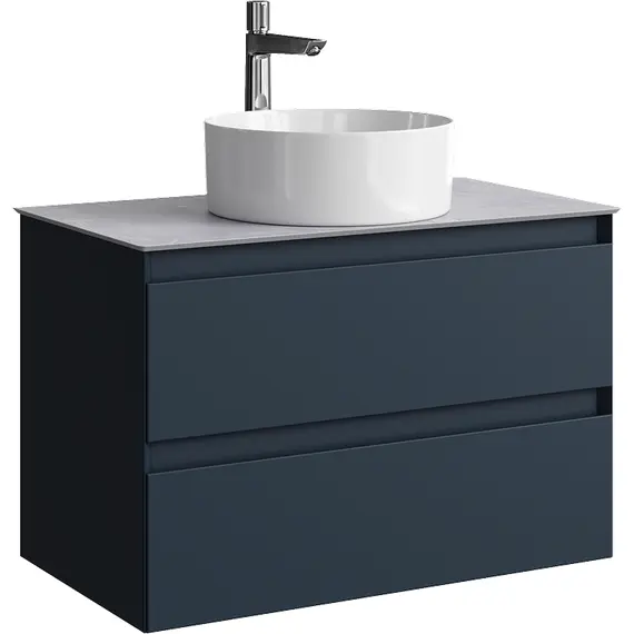 Подвесная тумба с двумя ящиками AQWELLA 81 см, цвет серый со столешницей серый камень