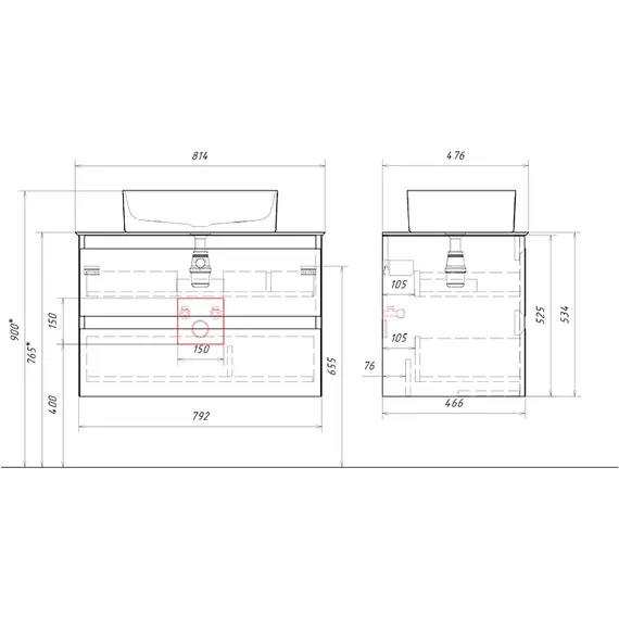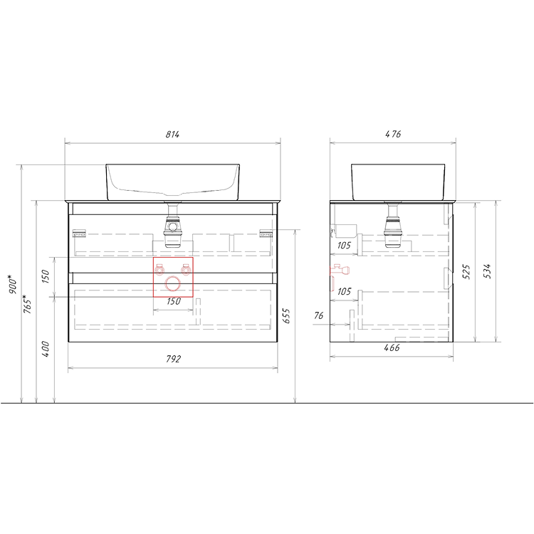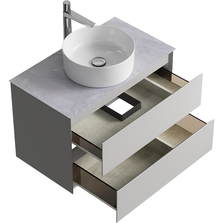 Подвесная тумба с двумя ящиками AQWELLA 81 см, цвет серый туман со столешницей серый камень