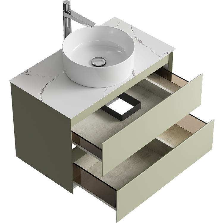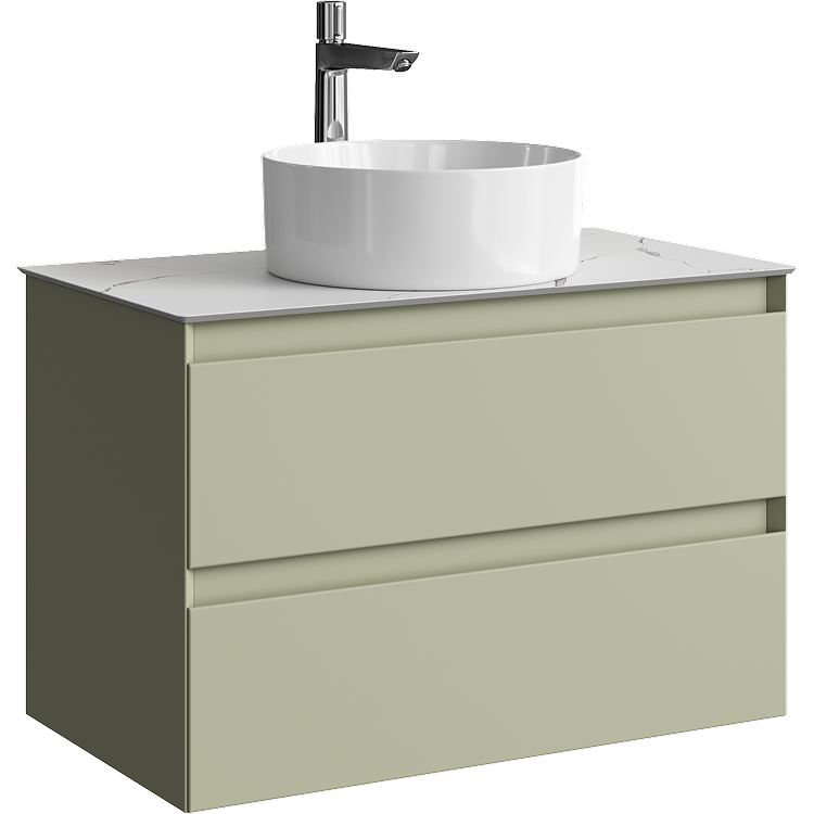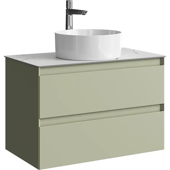 Подвесная тумба с двумя ящиками AQWELLA 81 см, цвет зеленый шалфей со столешницей мрамор белый