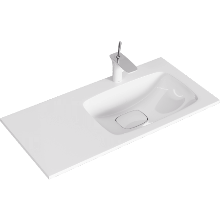 Подвесная тумба с двумя ящиками и одной дверью AQWELLA 90 см в белом цвете (чаша справа)