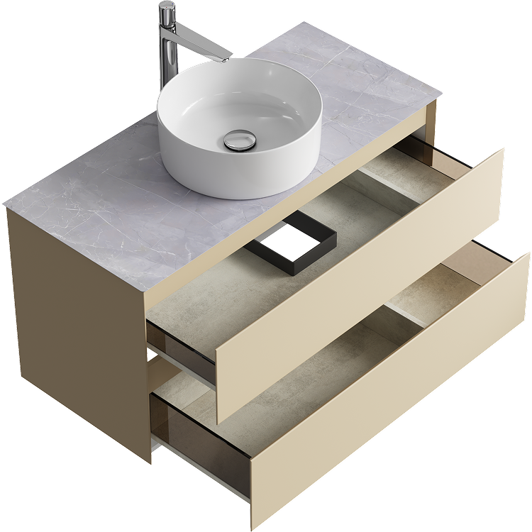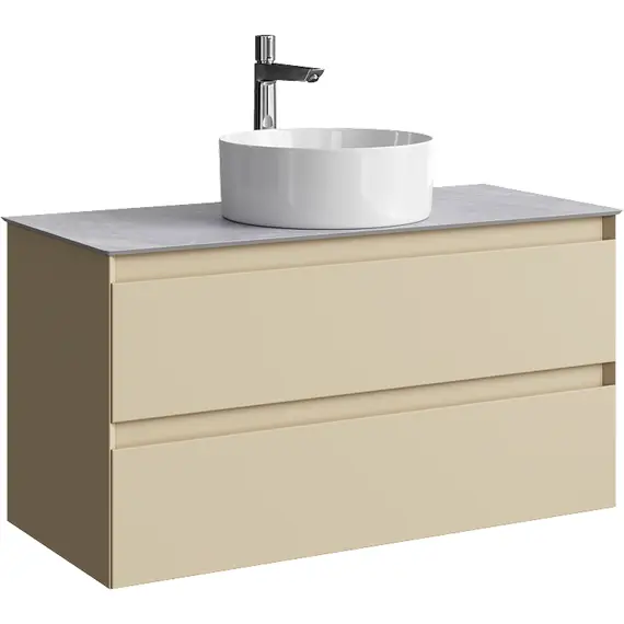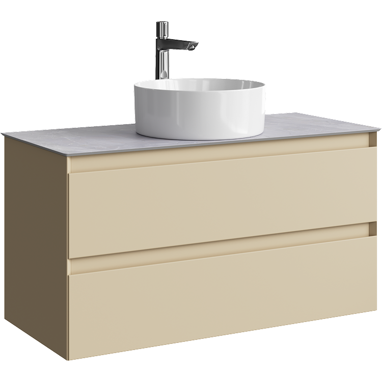 Подвесная тумба с двумя ящиком AQWELLA 100 см, цвет морская дюна со столешницей серый камень