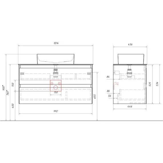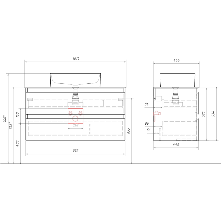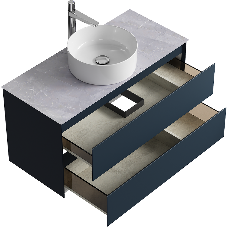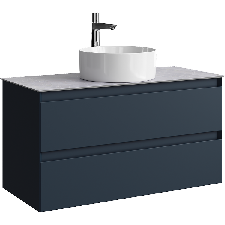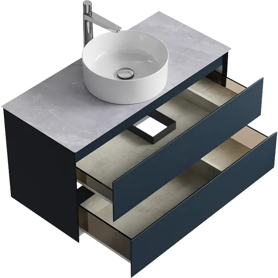 Подвесная тумба с двумя ящиком AQWELLA 100 см, цвет серый со столешницей серый камень