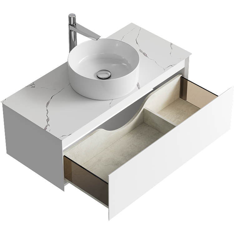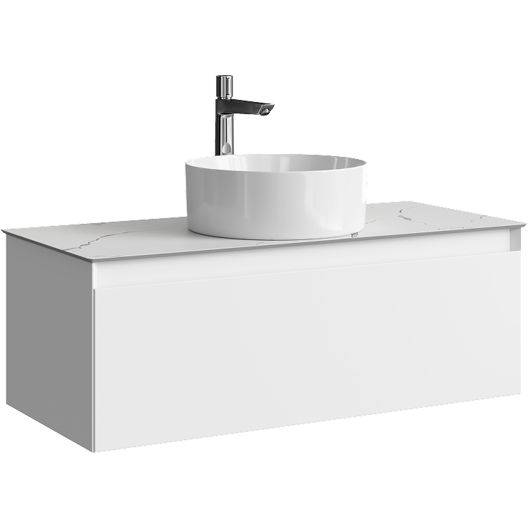 Подвесная тумба с одним ящиком AQWELLA 100 см, цвет белый со столешницей мрамор белый