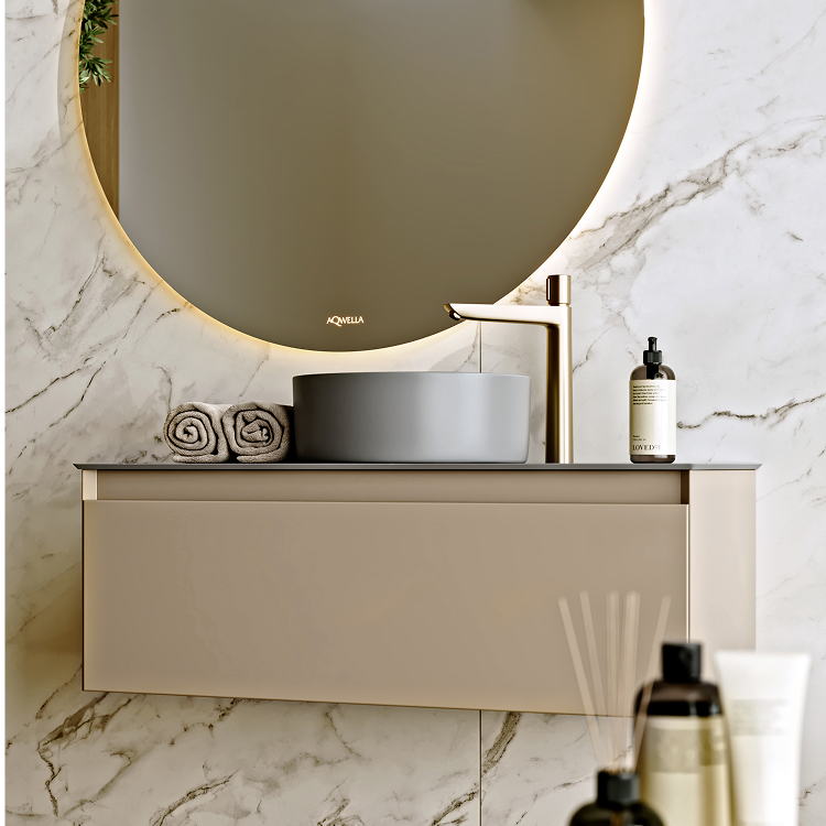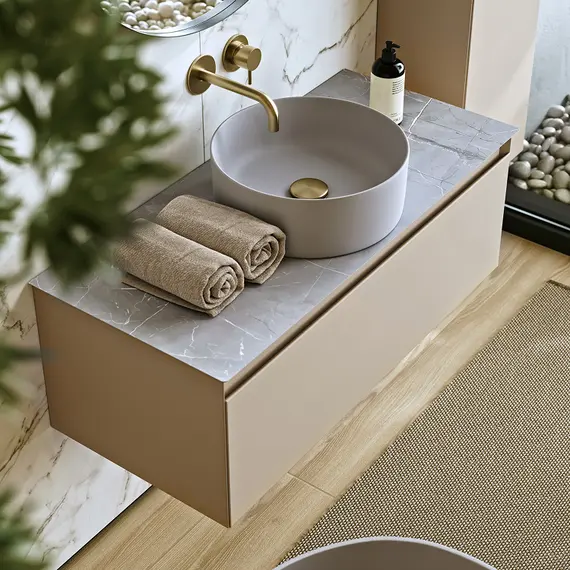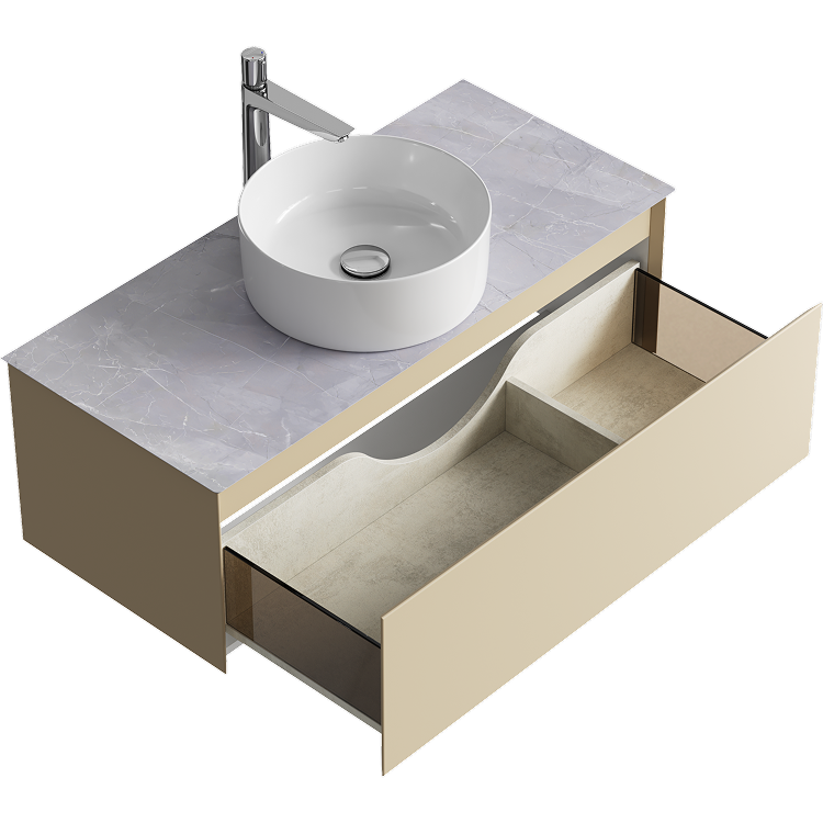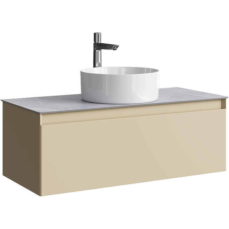 Подвесная тумба с одним ящиком AQWELLA 100 см, цвет морская дюна со столешницей серый камень