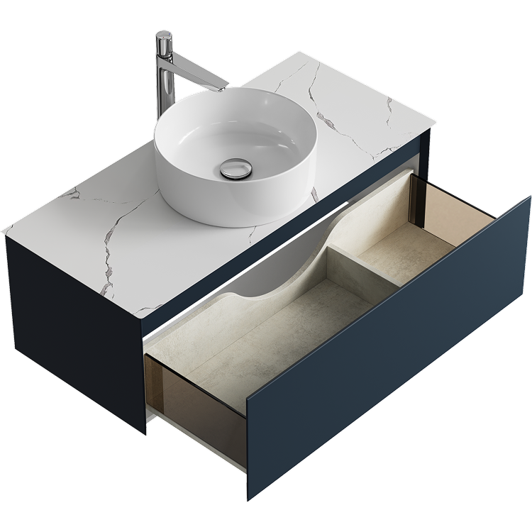 Подвесная тумба с одним ящиком AQWELLA 100 см, цвет серый со столешницей мрамор белый