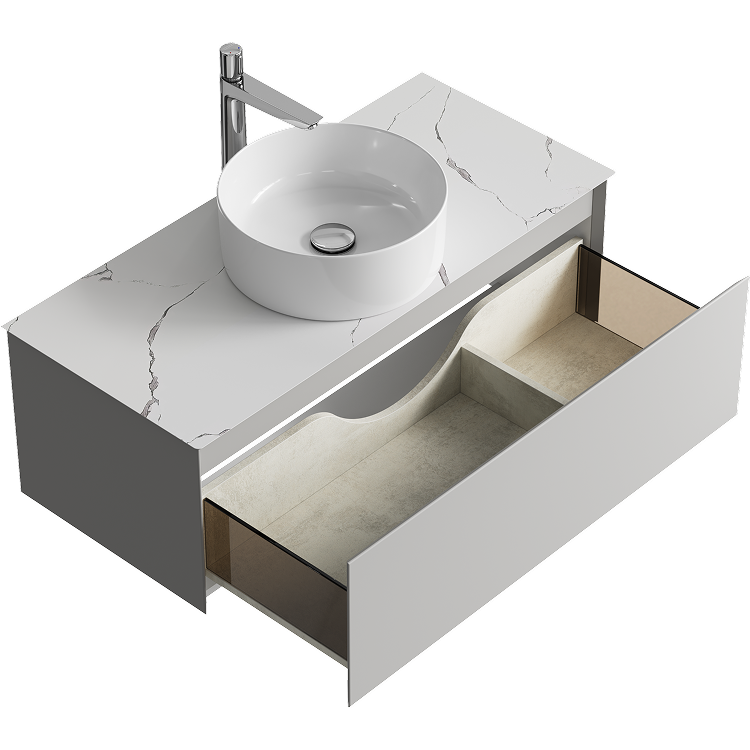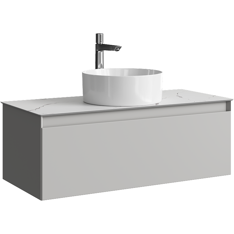 Подвесная тумба с одним ящиком AQWELLA 100 см, цвет серый туман со столешницей мрамор белый