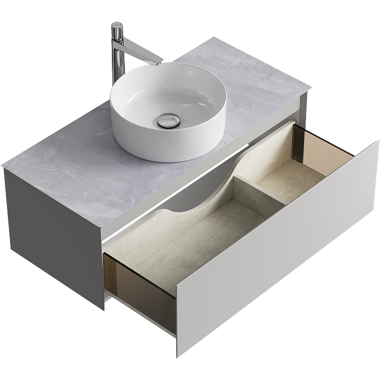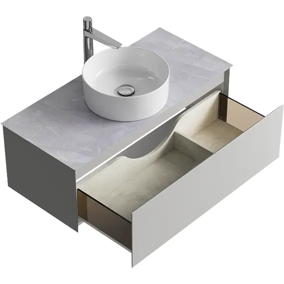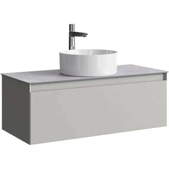 Подвесная тумба с одним ящиком AQWELLA 100 см, цвет серый туман со столешницей серый камень