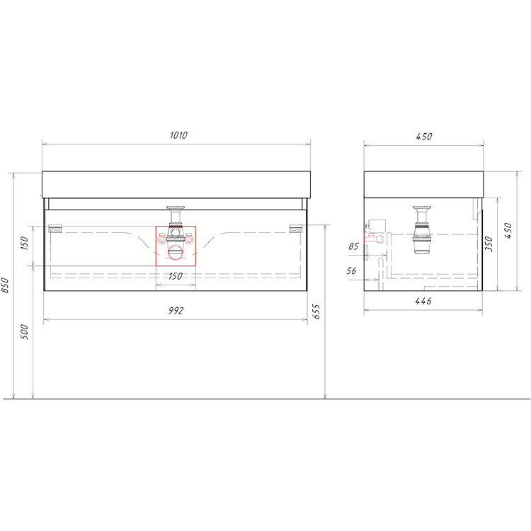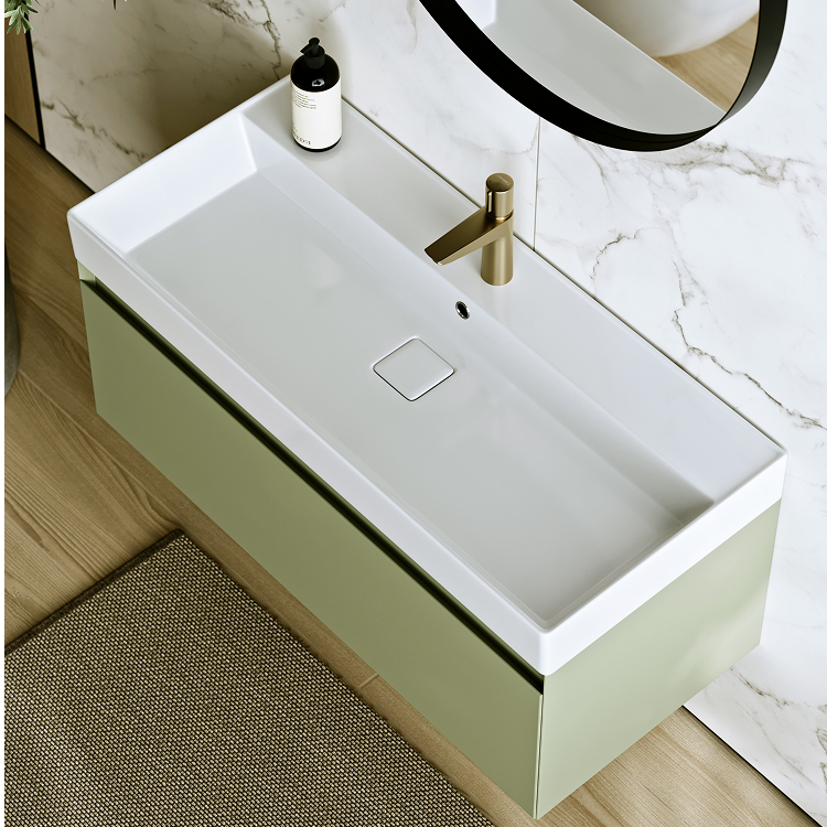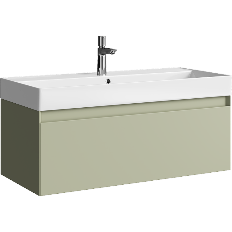 Подвесная тумба с одним ящиком AQWELLA 100 см, цвет зеленый шалфей