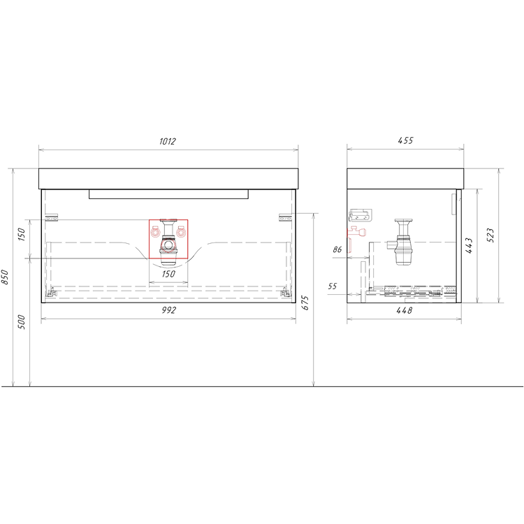 Подвесная тумба с одним ящиком AQWELLA 101 см, цвет белый
