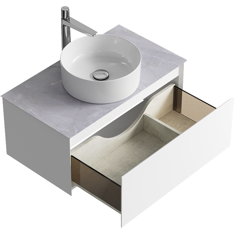 Подвесная тумба с одним ящиком AQWELLA 81 см, цвет белый со столешницей серый камень