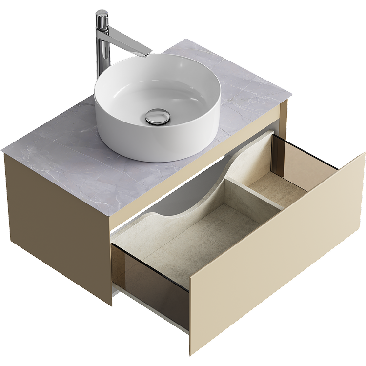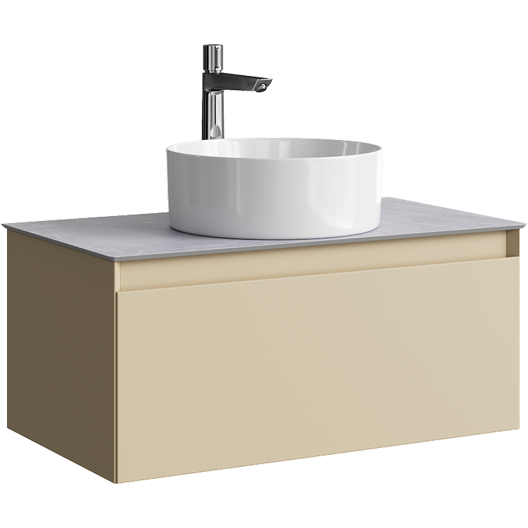 Подвесная тумба с одним ящиком AQWELLA 81 см, цвет морская дюна со столешницей серый камень