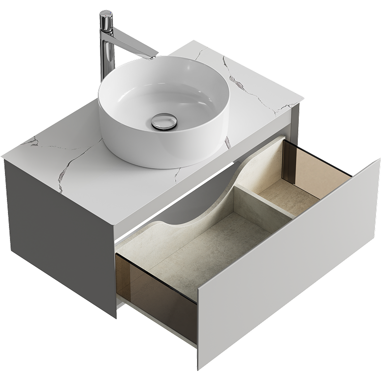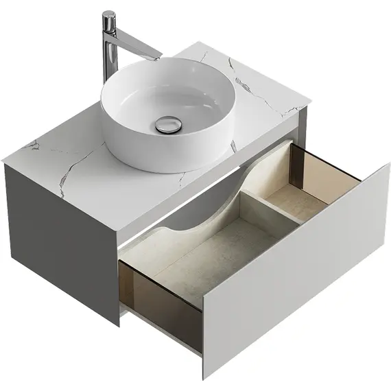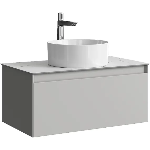 Подвесная тумба с одним ящиком AQWELLA 81 см, цвет серый туман со столешницей мрамор белый