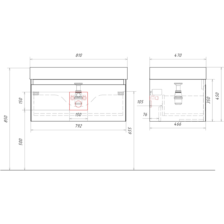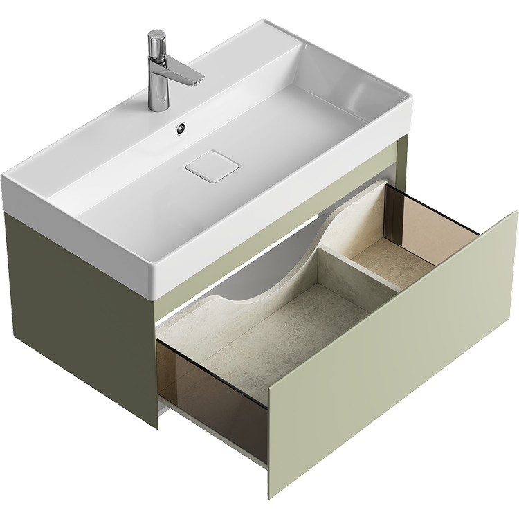 Подвесная тумба с одним ящиком AQWELLA 81 см, цвет зеленый шалфей