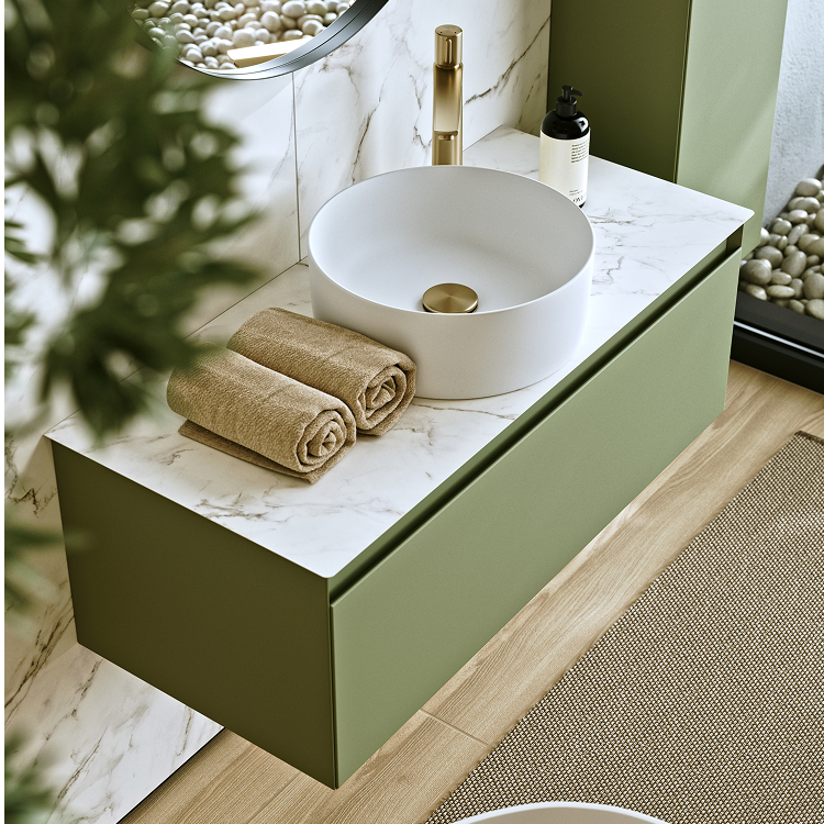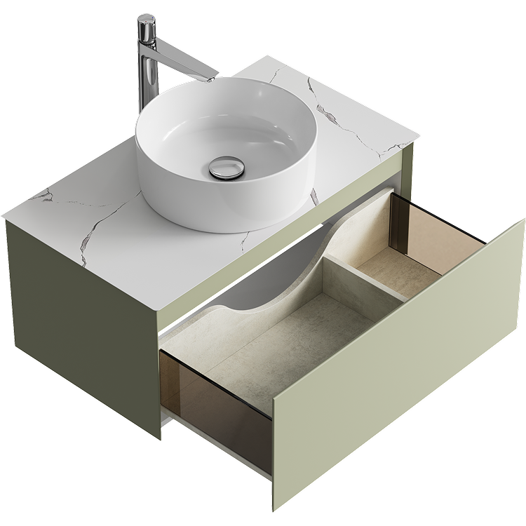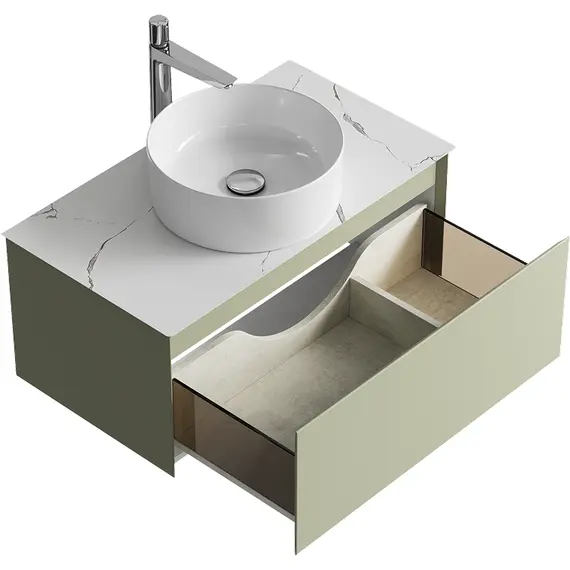 Подвесная тумба с одним ящиком AQWELLA 81 см, цвет зеленый шалфей со столешницей мрамор белый