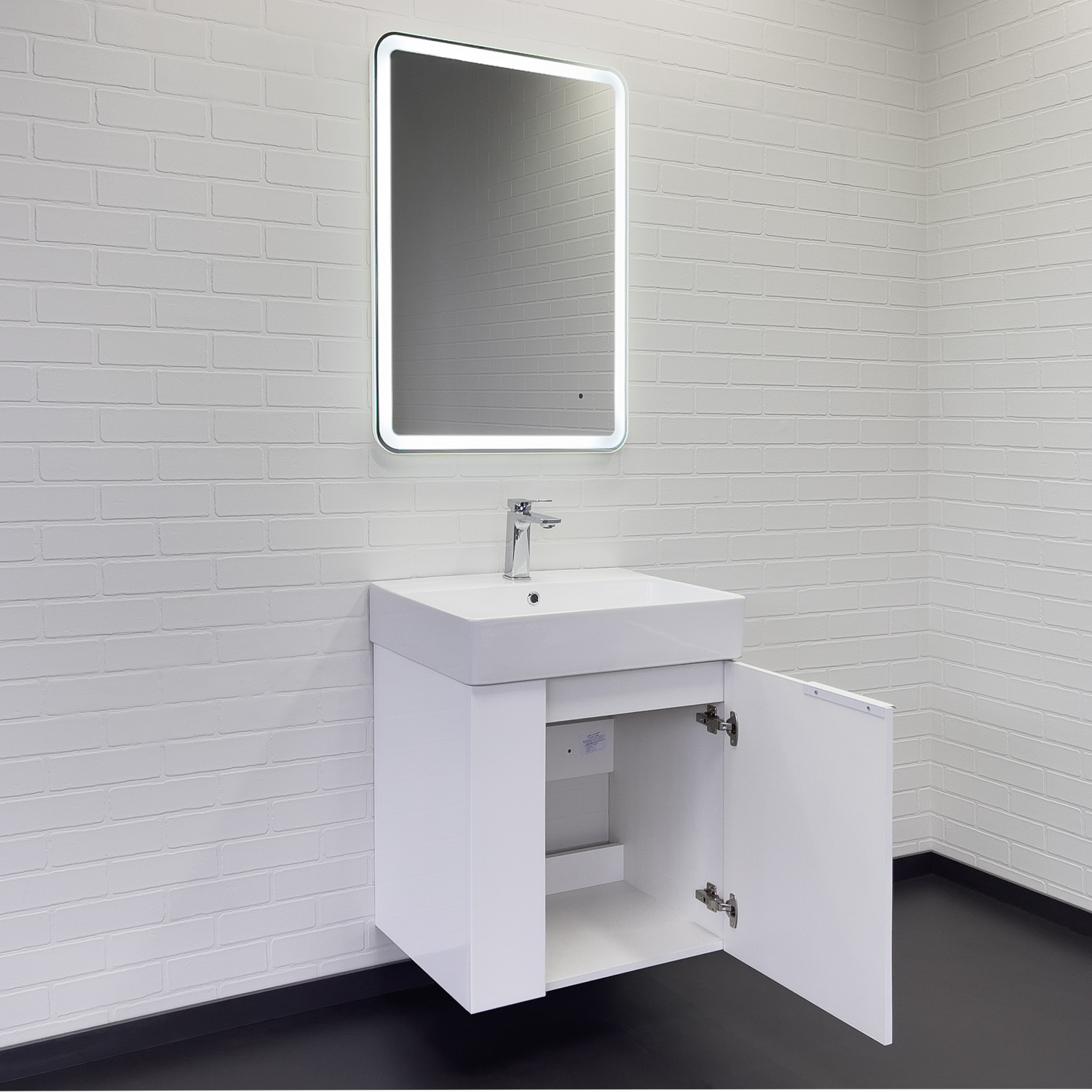 Подвесная тумба-умывальник Comforty Асти-60П белый глянец с раковиной CF3WL032