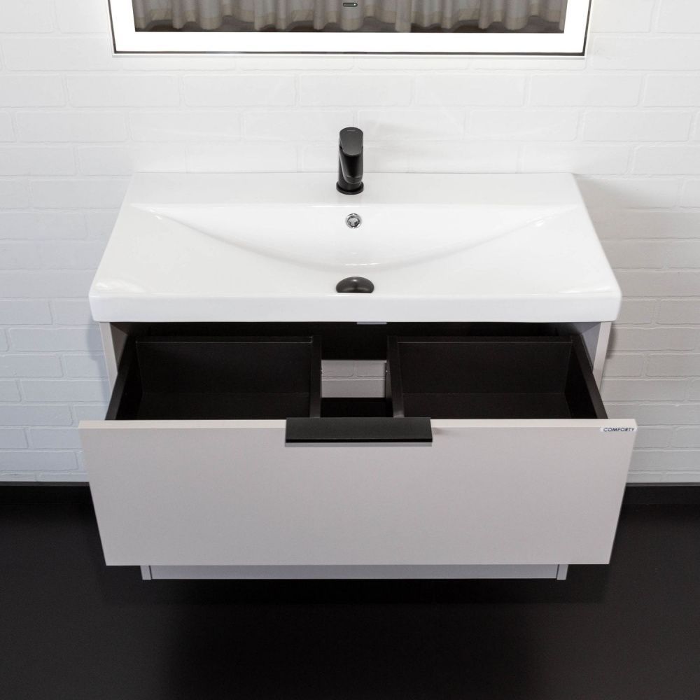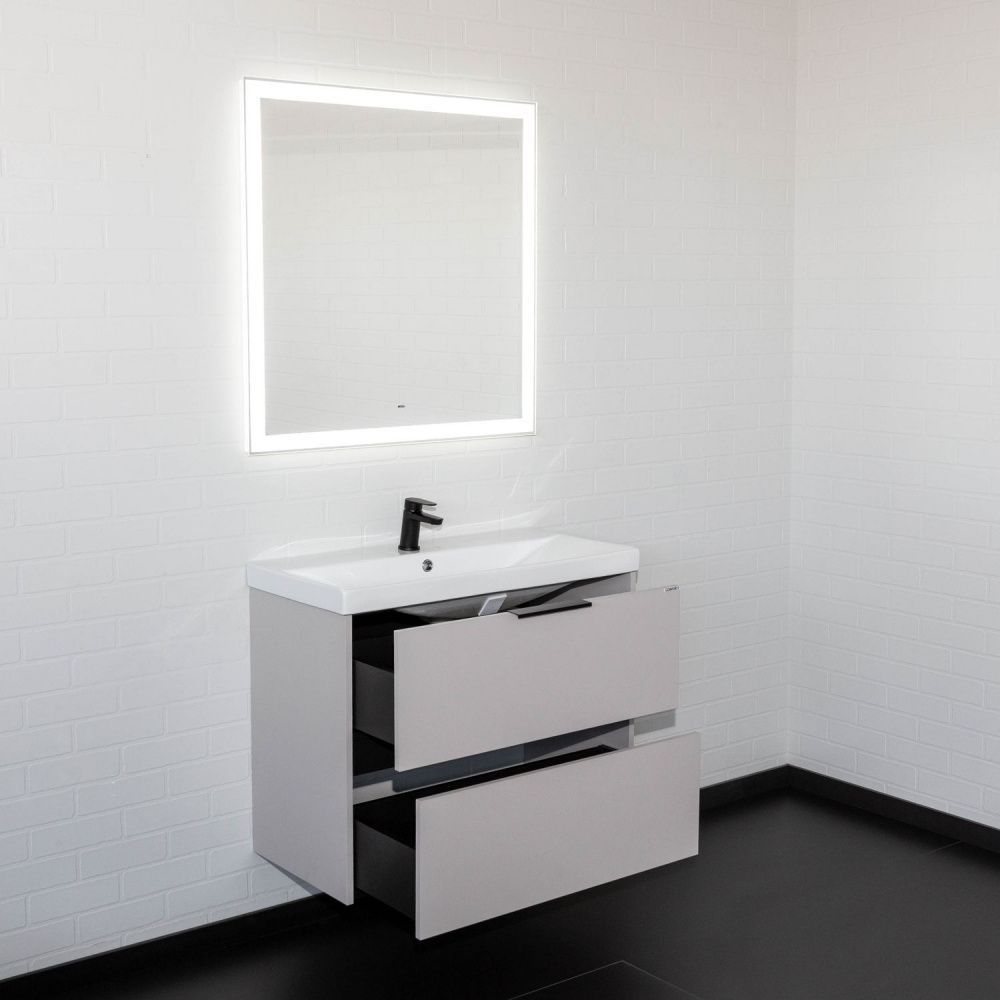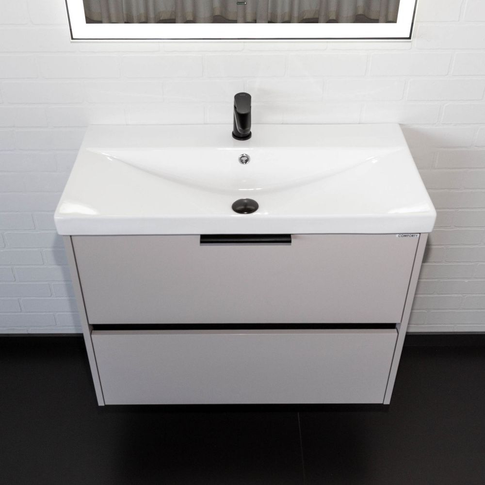 Подвесная тумба-умывальник Comforty Селенга-80 серый шелк с раковиной CF19696BX-80