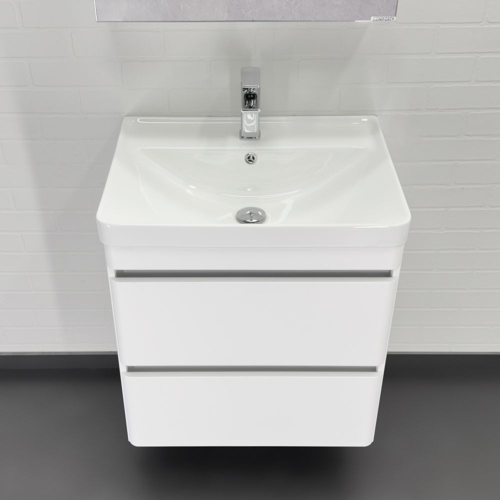 Подвесная тумба-умывальник Comforty Валдай-60П2 белый матовый с раковиной 4460