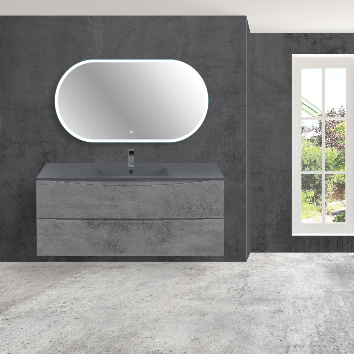 Тумба под керамическую раковину Vincea Миа (Mia) 1200 подвесная, 2 выкатных ящика микролифт, Beton