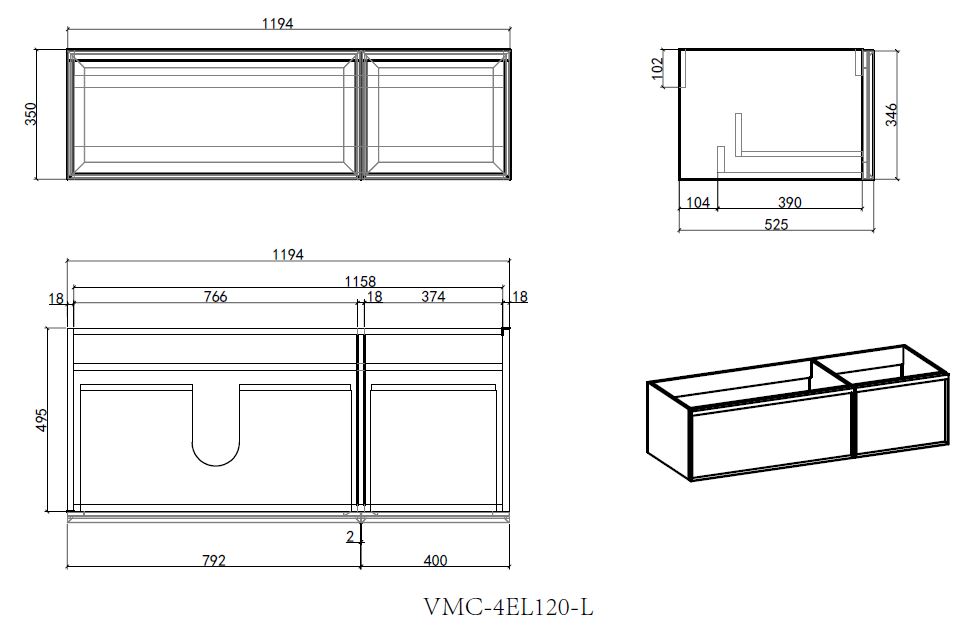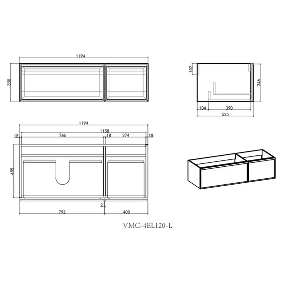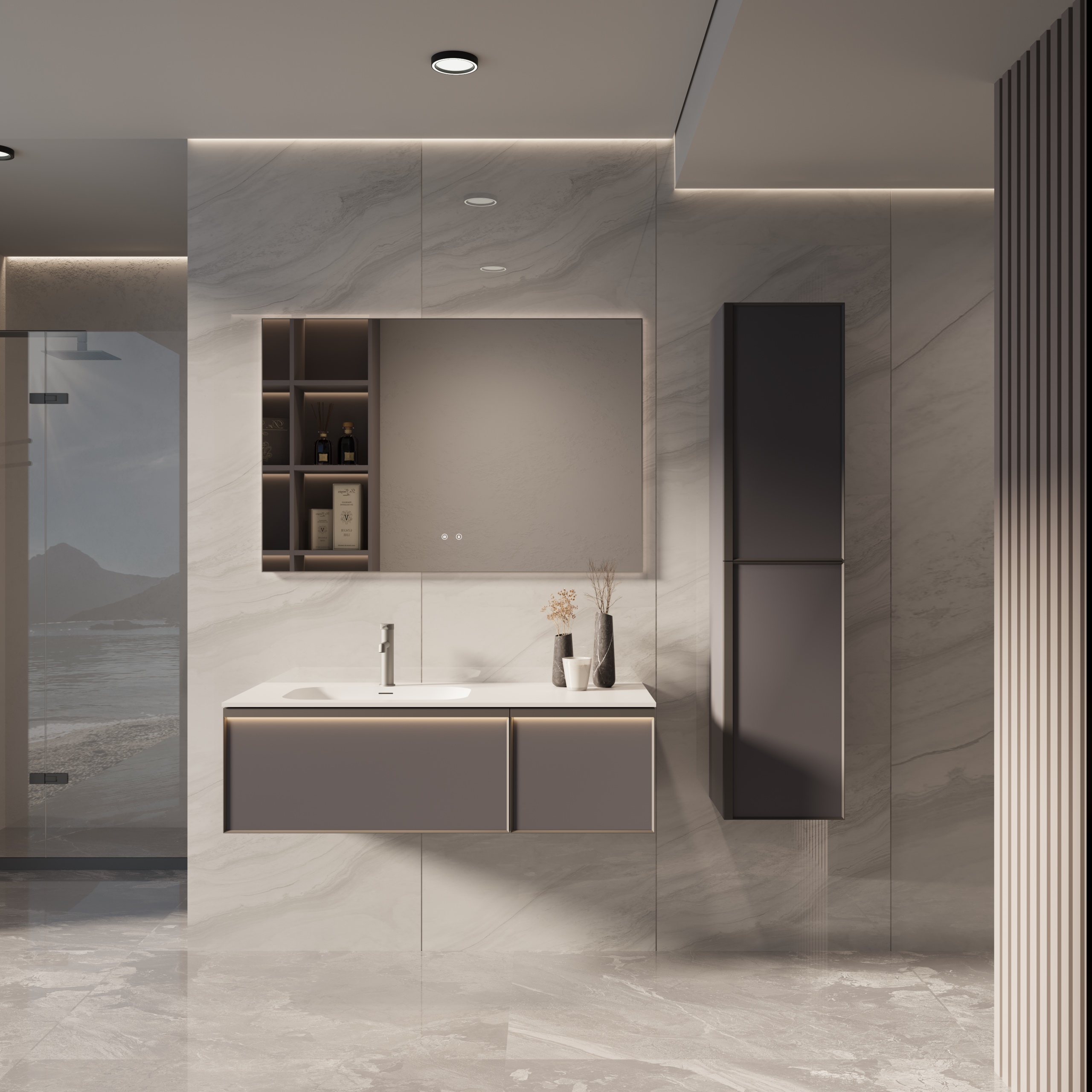 Тумба под раковину Vincea Элис (Elise) 1200 подвесная, 2 выкатных ящика микролифт, серый матовый