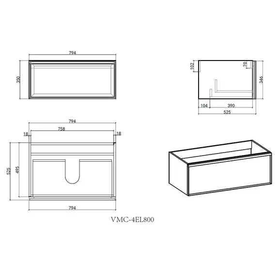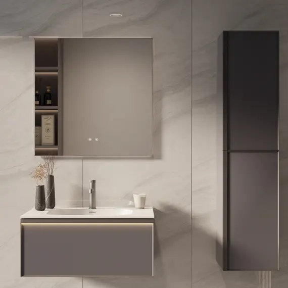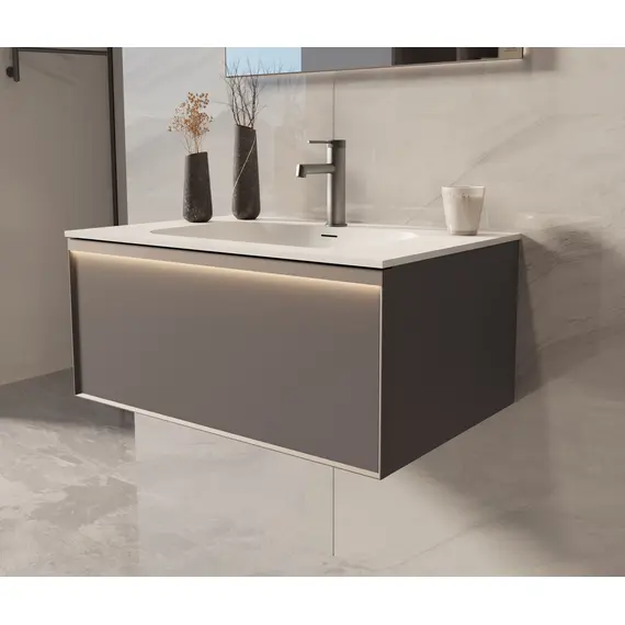 Тумба под раковину Vincea Элис (Elise) 800 подвесная, 2 выкатных ящика микролифт, серый матовый