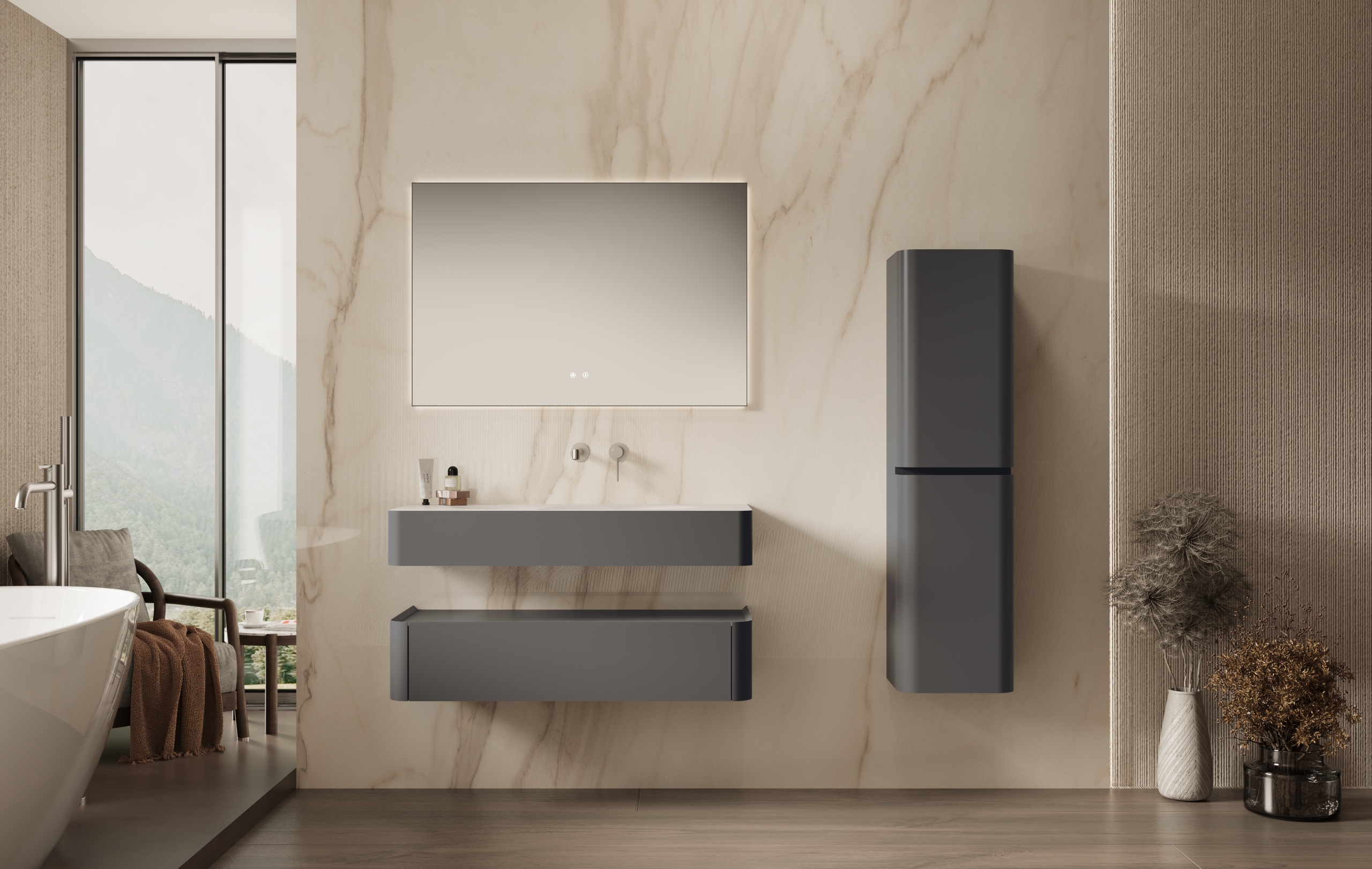 Тумба под раковину Vincea Каприз (Caprise) 1200 подвесная, 1 выкатной ящик микролифт, серый матовый