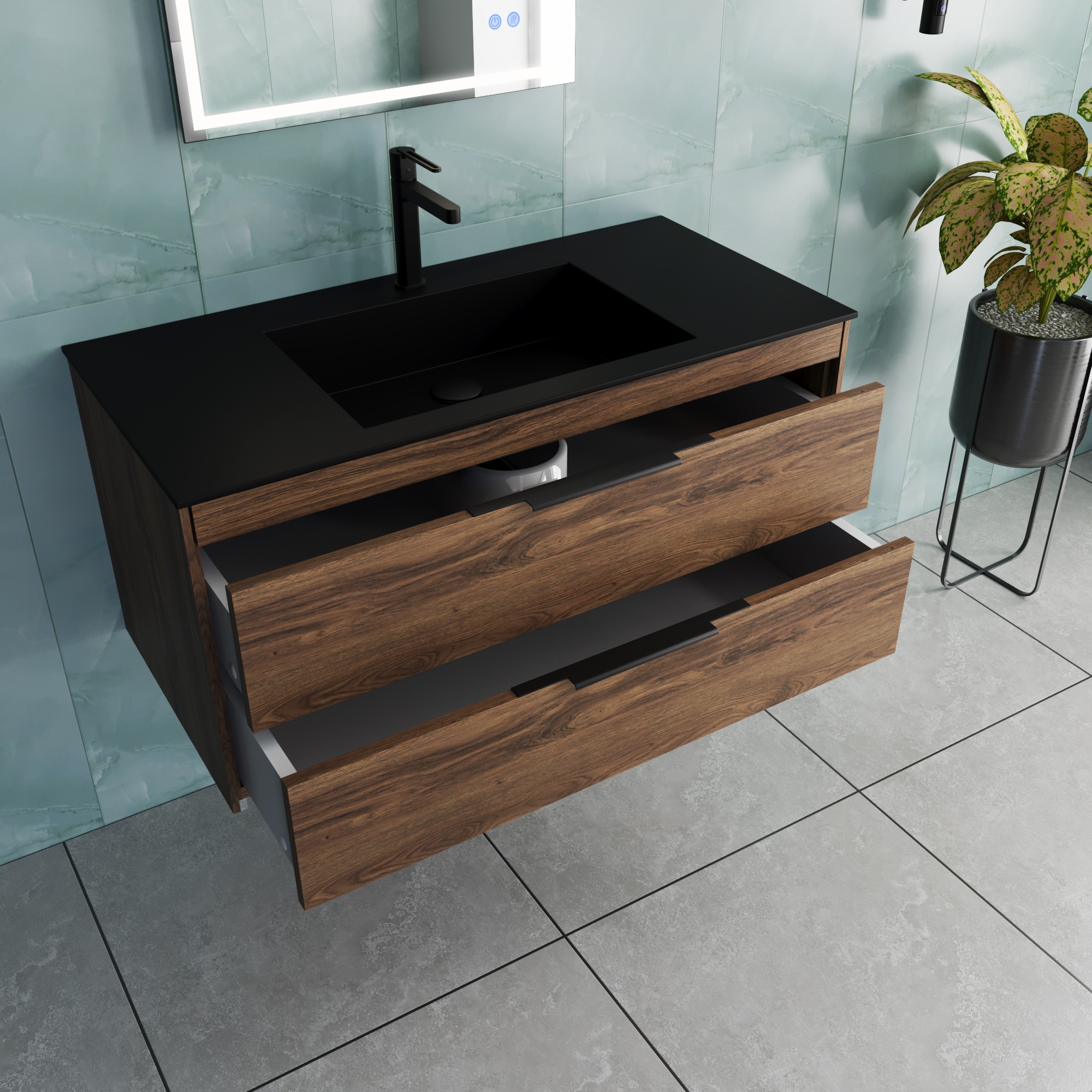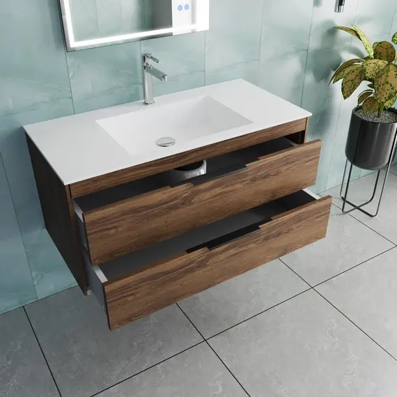 Тумба под раковину Vincea Кьяра 2D (Chiara 2D) 1000 подвесная, 2 выкатных ящика микролифт, С.Oak