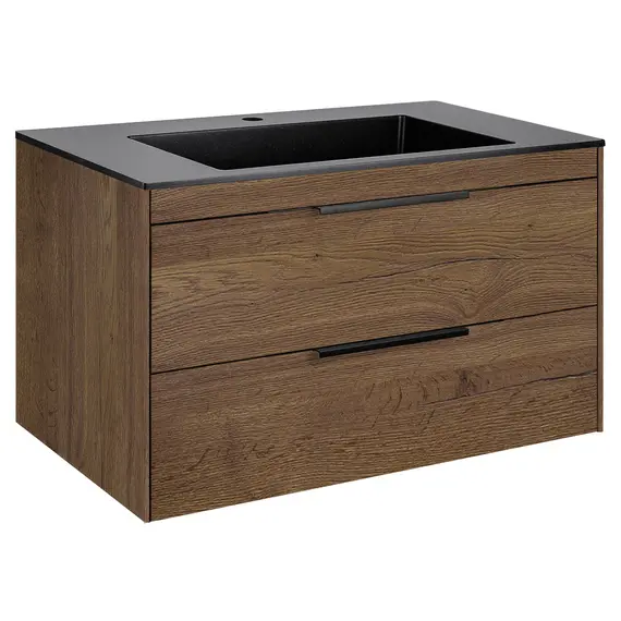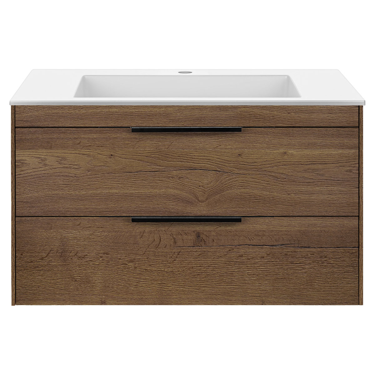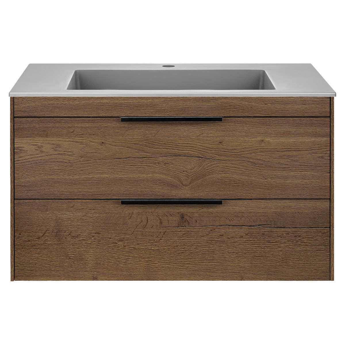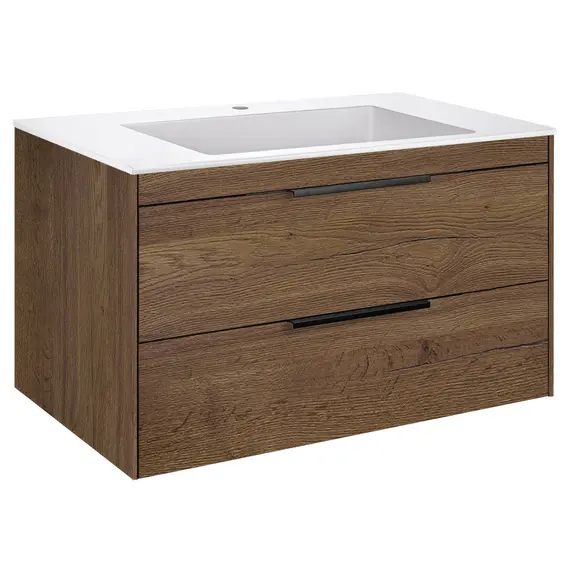 Тумба под раковину Vincea Кьяра 2D (Chiara 2D) 800 подвесная, 2 выкатных ящика микролифт, Дуб табак (T.Oak)