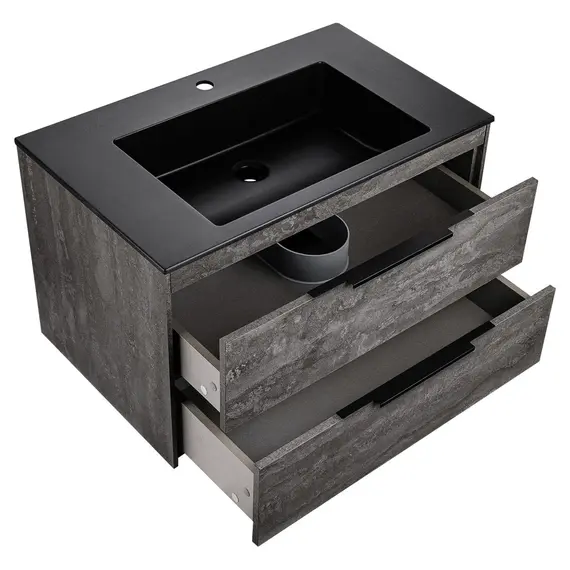 Тумба под раковину Vincea Кьяра 2D (Chiara 2D) 800 подвесная, 2 выкатных ящика микролифт, Серый камень (G.Stone)