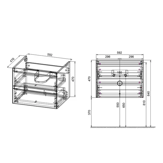 Тумба под раковину Vincea Лука (Luka) 600 подвесная, 2 выкатных ящика микролифт, Дуб табак (T.Oak)