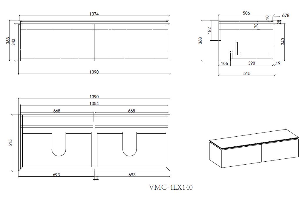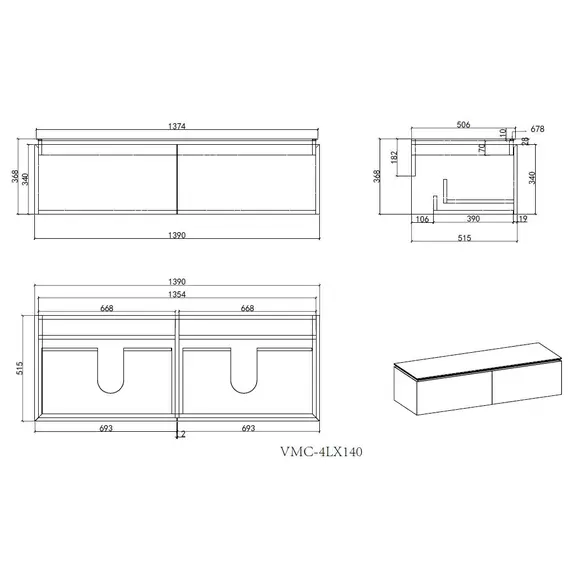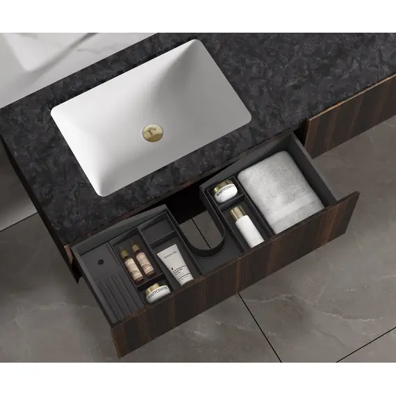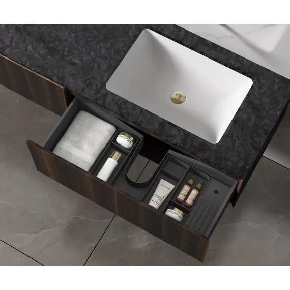 Тумба под раковину Vincea Люкс (Luxe) 1400 подвесная, 2 выкатных ящика микролифт, натуральный орех