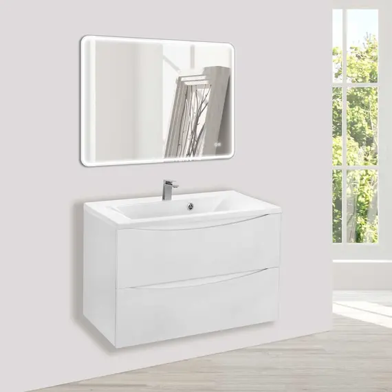 Тумба под раковину Vincea Миа (Mia) 800 подвесная, 2 выкатных ящика микролифт, Белый глянцевый (G.White)