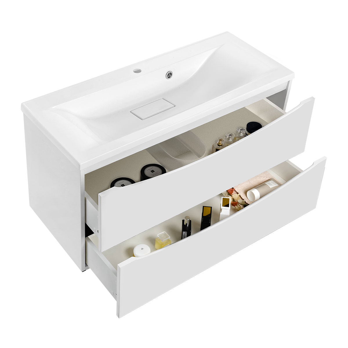 Тумба под раковину Vincea Миа (Mia) 900 подвесная, 2 выкатных ящика микролифт, Белый глянцевый (G.White)