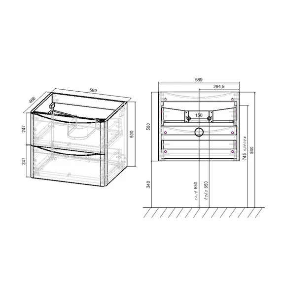 Тумба под раковину Vincea Паола (Paola) 600 подвесная, 2 выкатных ящика микролифт, Винтажный дуб (V.Oak)