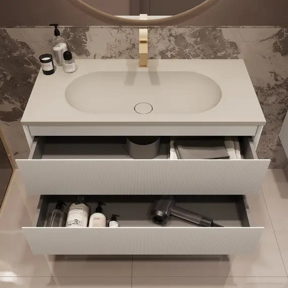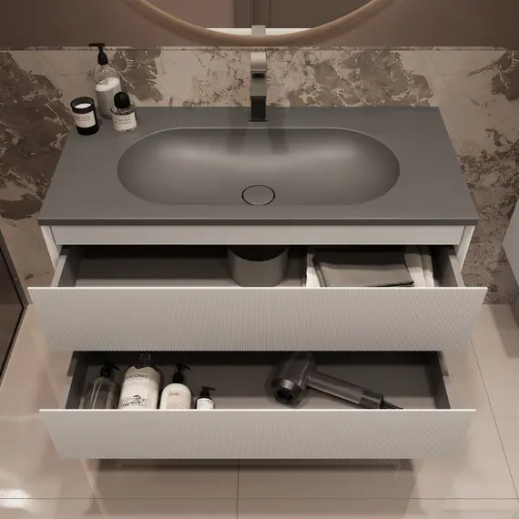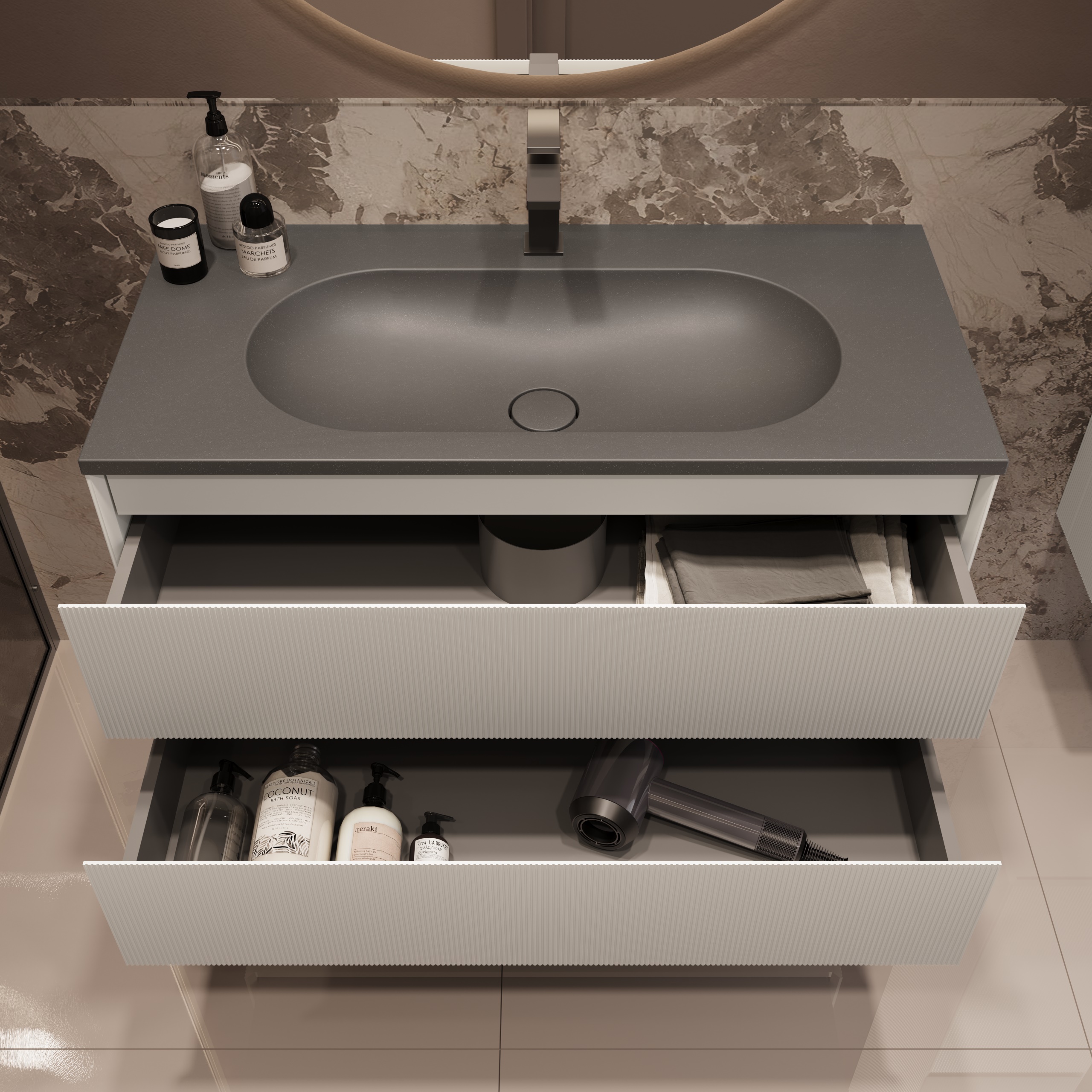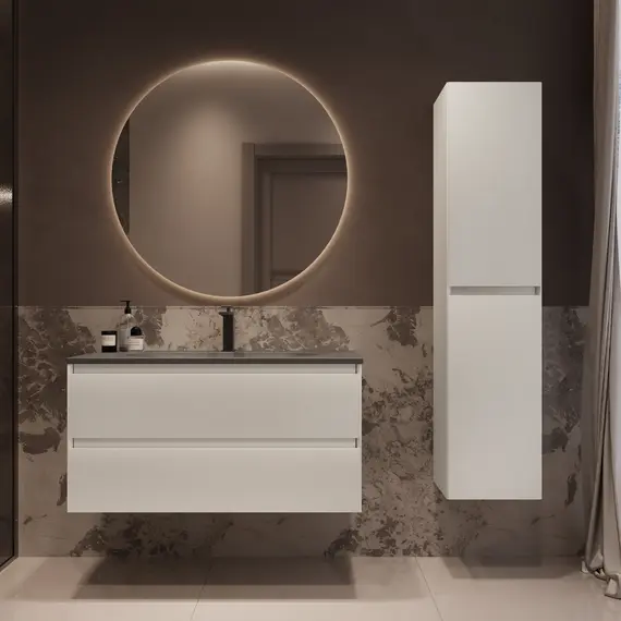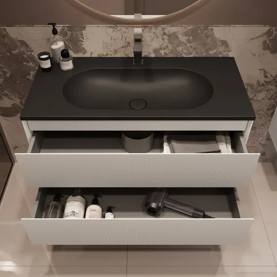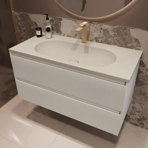 Тумба под раковину Vincea Велле (Welle) 1000 подвесная, 2 выкатных ящика микролифт, Белый матовый софт-тач