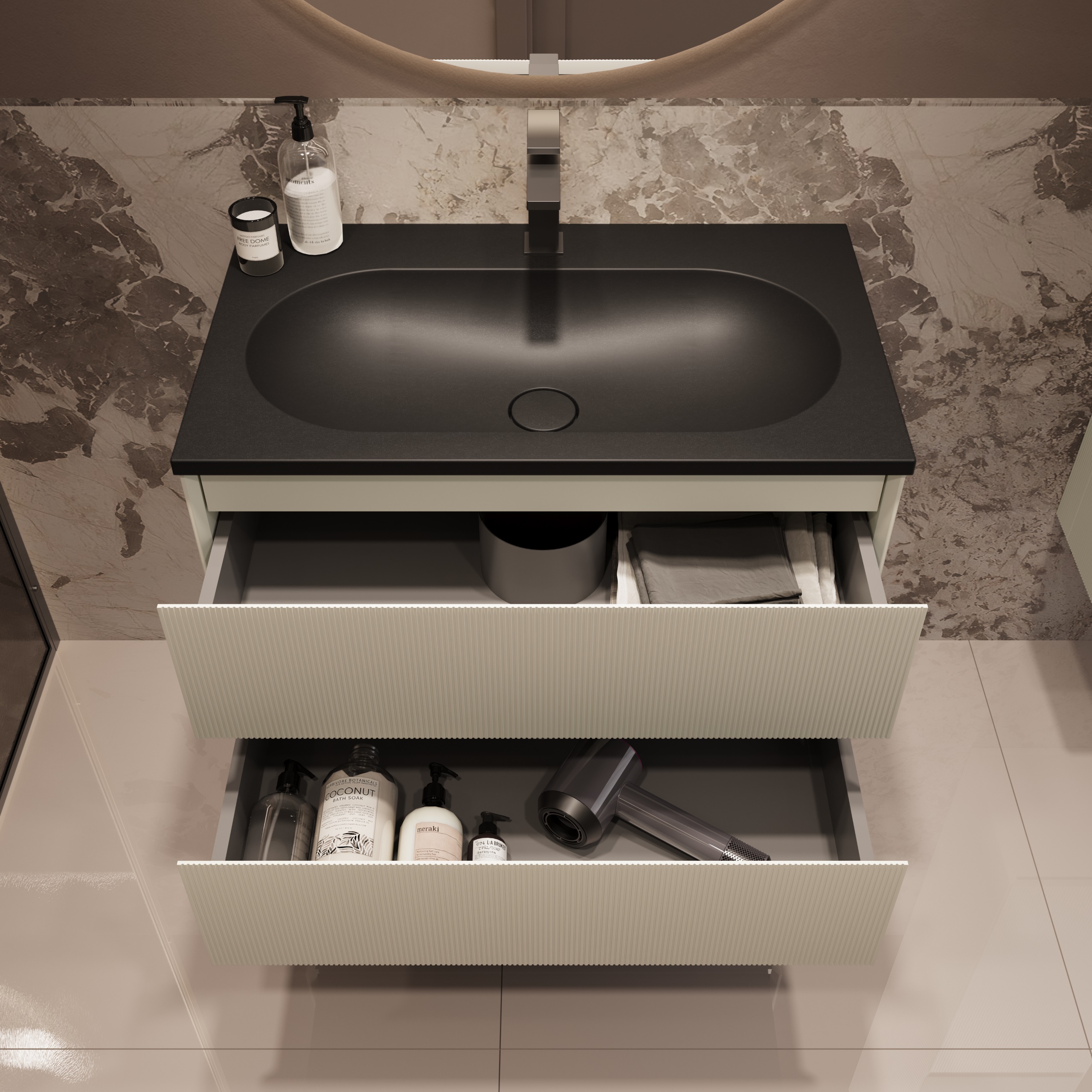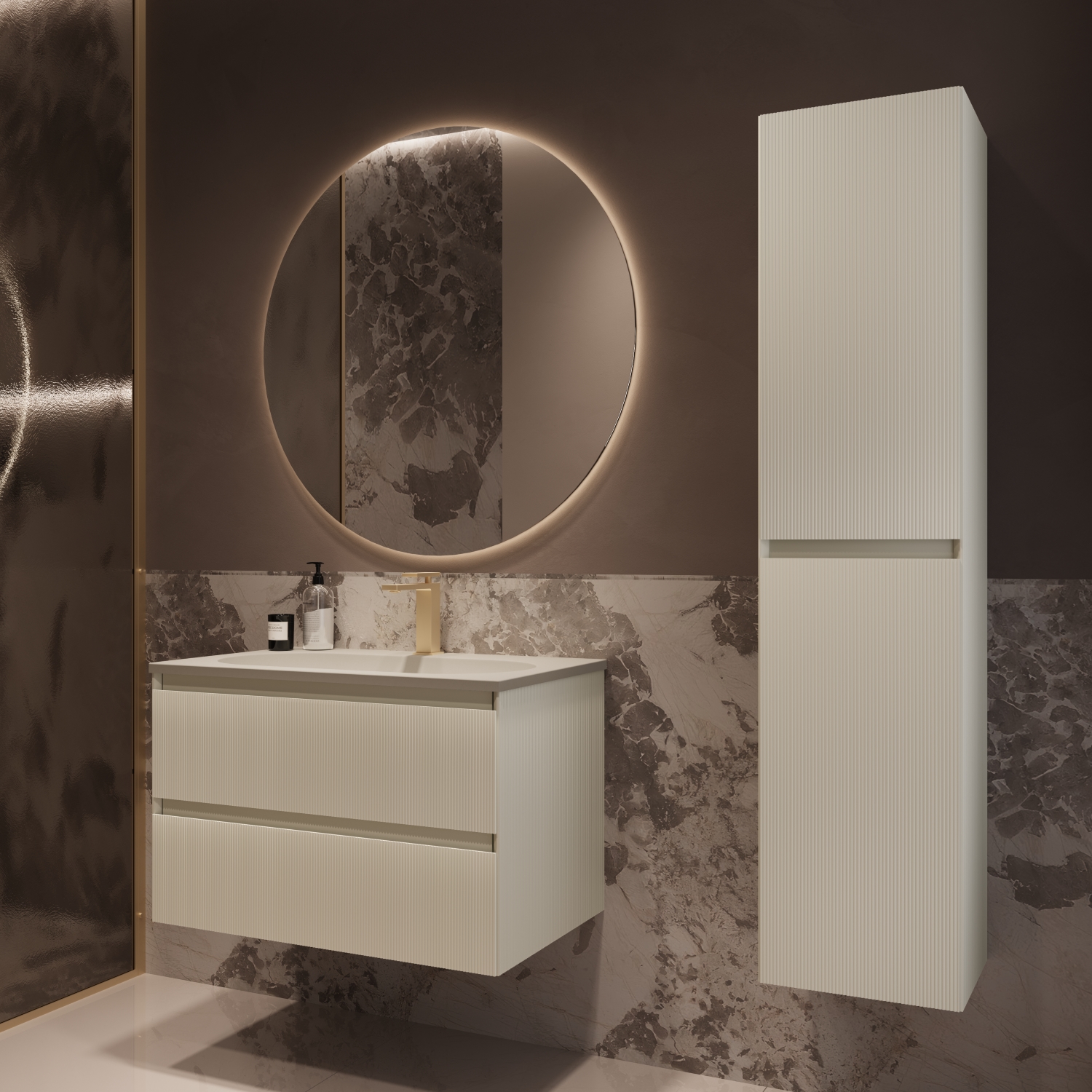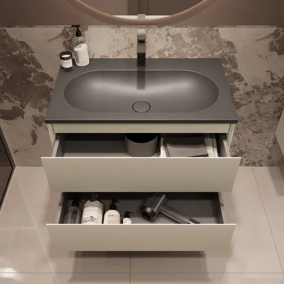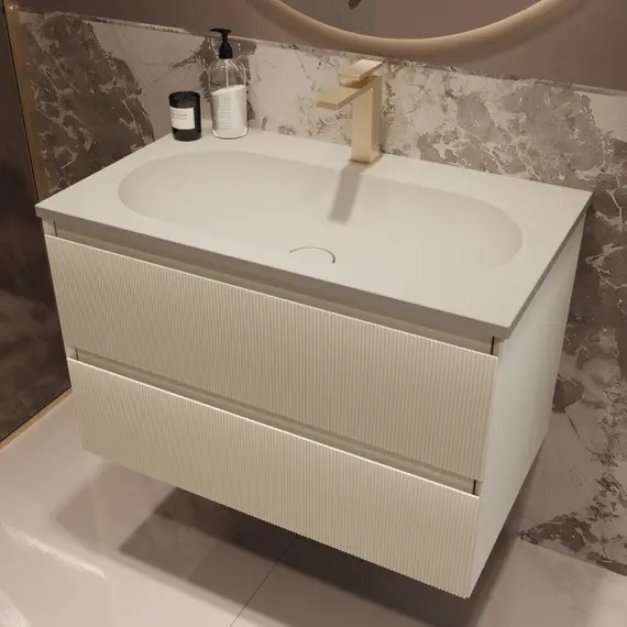 Тумба под раковину Vincea Велле (Welle) 800 подвесная, 2 выкатных ящика микролифт, Бежевый матовый софт-тач