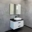 Тумба изготовлена из белого влагостойкого ДСП, фасады из МДФ окрашены белой глянцевой эмалью.