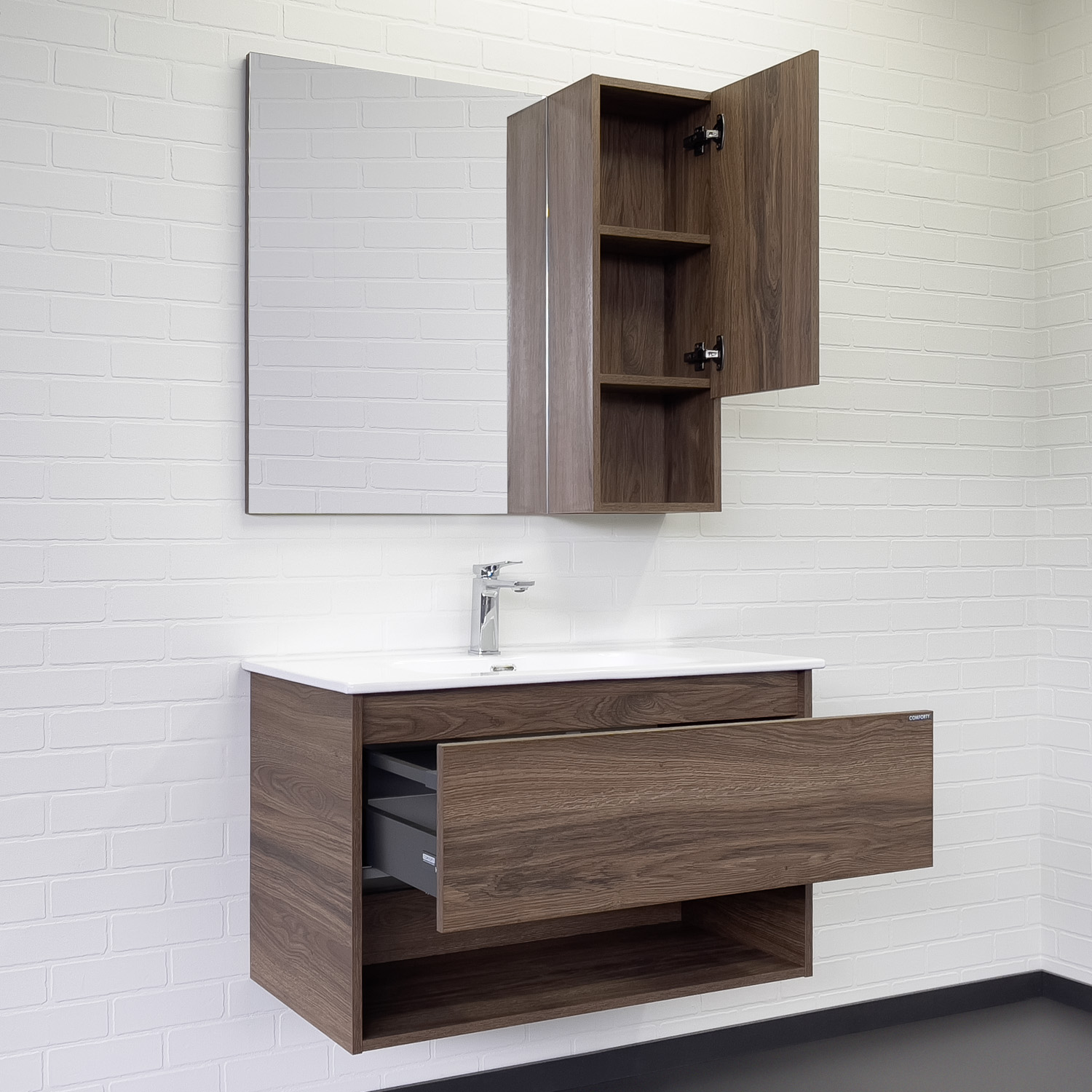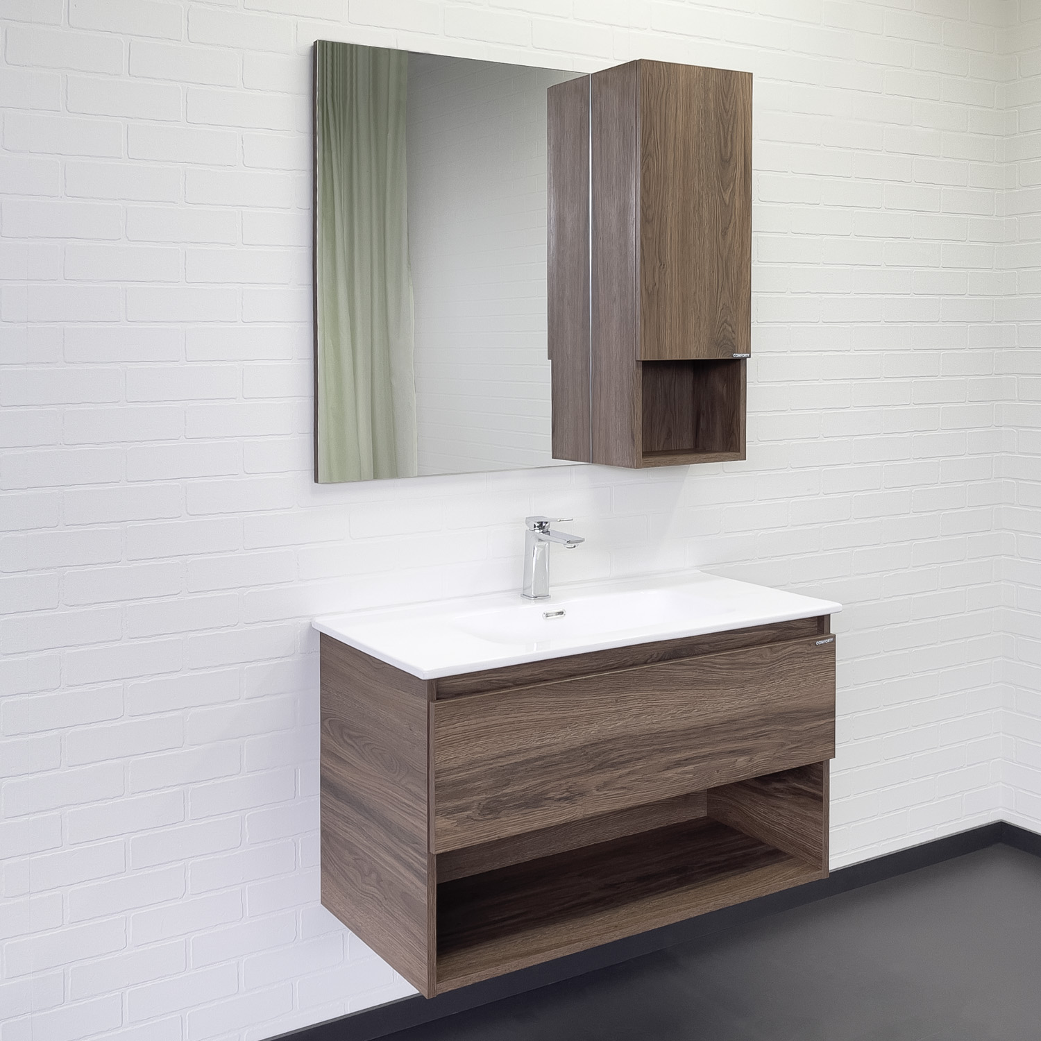 Тумба-умывальник Comforty Бордо 90 дуб темно-коричневый с раковиной Comforty 9090M