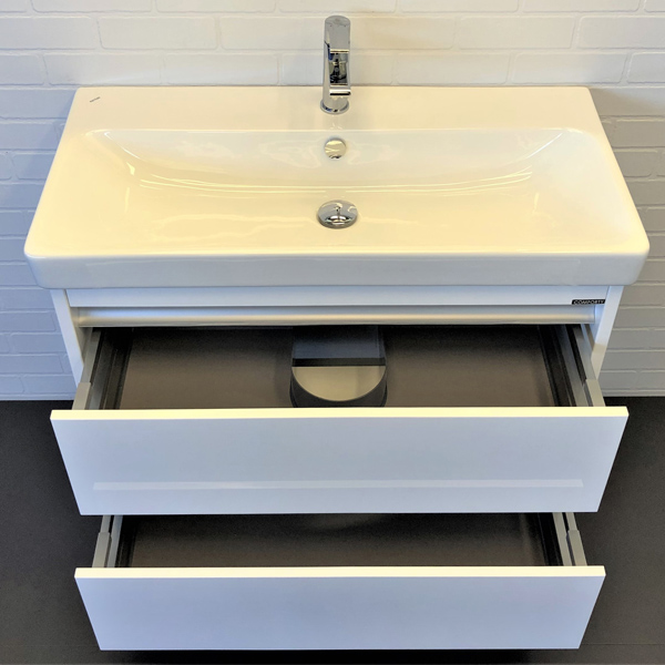 Тумба-умывальник Comforty Дублин 89 белый глянец с раковиной Адриана 90