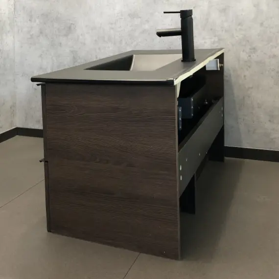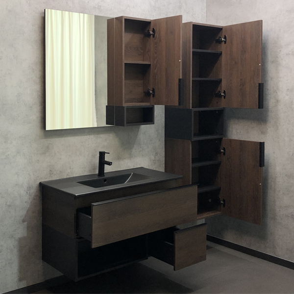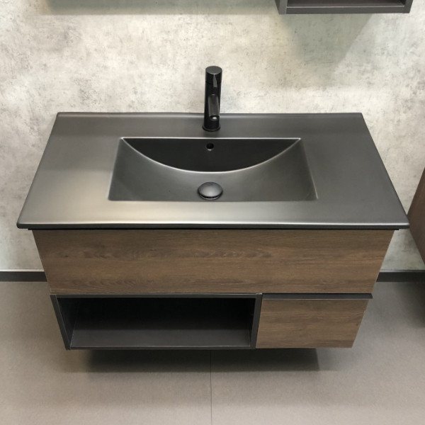 Тумба-умывальник Comforty Франкфурт 90 дуб шоколадно-коричневый с раковиной Comforty 90E черная матовая
