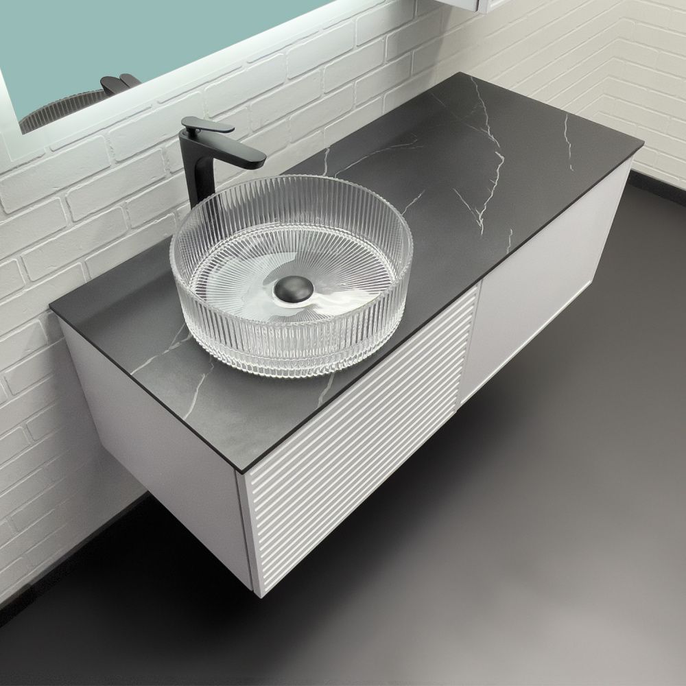 Комплектация: накладная раковина Comforty CF21001 из закаленного стекла, столешница из керамогранита Калакатта Блэк.