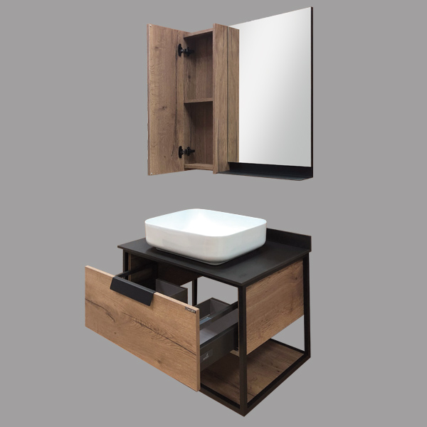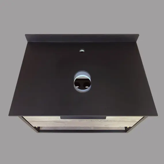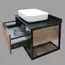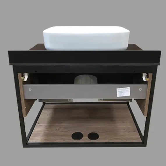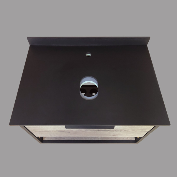 Комплектация: накладная раковина Comforty T-Y9378, столешница и пристенный плинтус из черного керамогранита. Тумба подготовлена для подключения водоснабжения снизу.