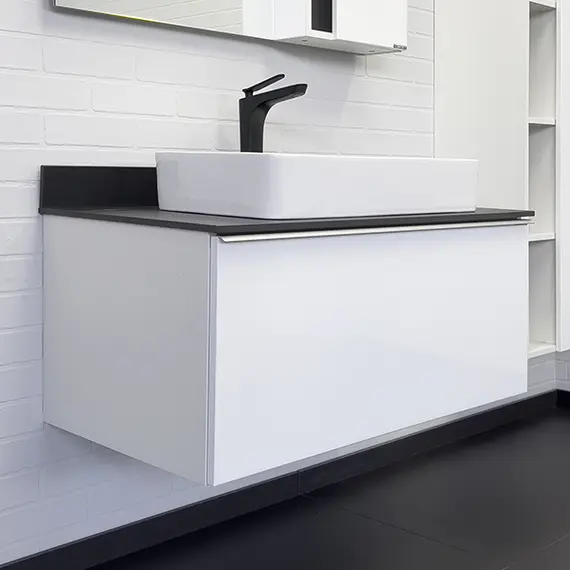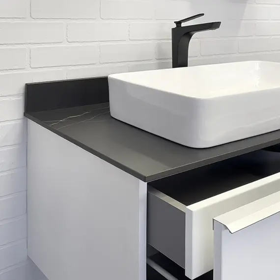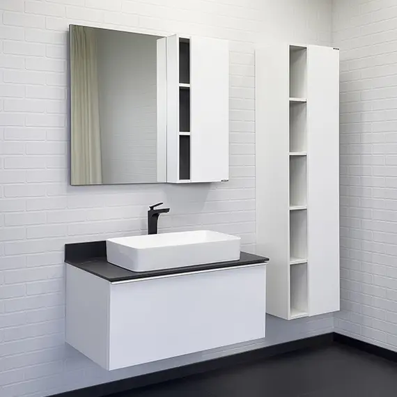 Тумба-умывальник Comforty Милан-90 белая со столешницей Калакатта Блэк с раковиной Comforty 78189