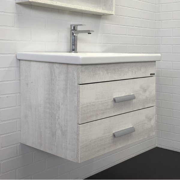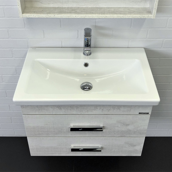 Тумба-умывальник Comforty Никосия-70П дуб белый с раковиной COMO 70