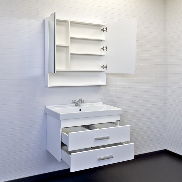 Тумба-умывальник Comforty Никосия-80П белый глянец с раковиной Fest 80
