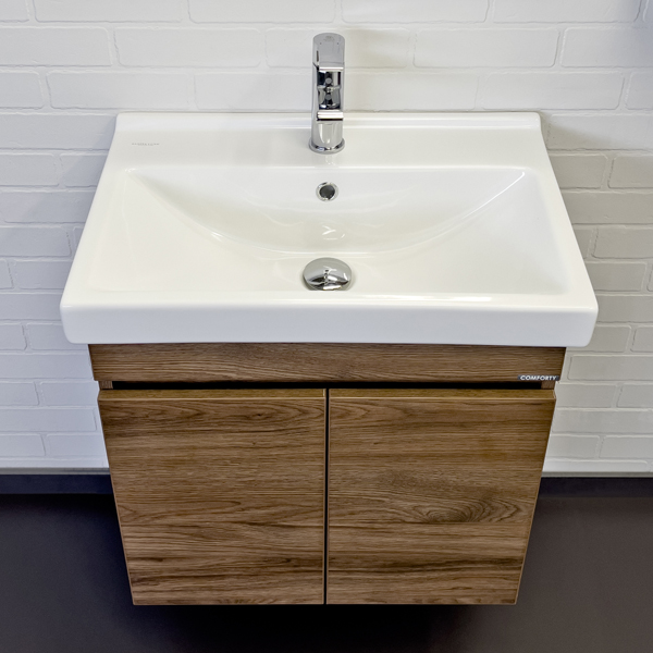 Тумба-умывальник Comforty Осло 60 дуб тёмно-коричневый с раковиной Fest 60
