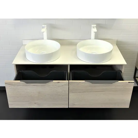 Тумба-умывальник Comforty Порто-120-2 дуб дымчатый с белой столешницей с раковинами Comforty 9110