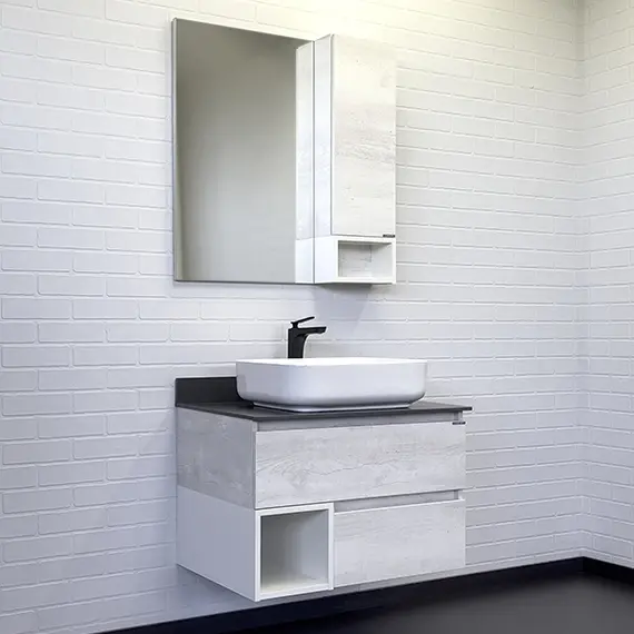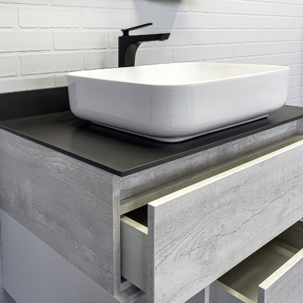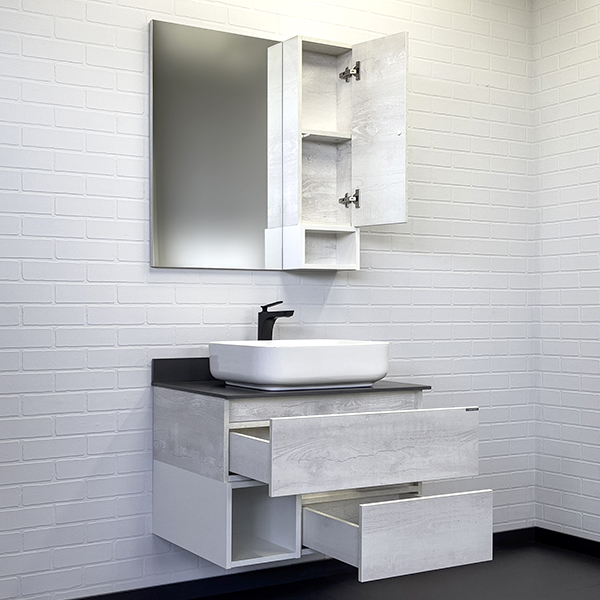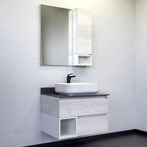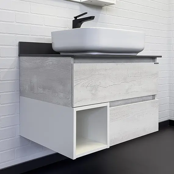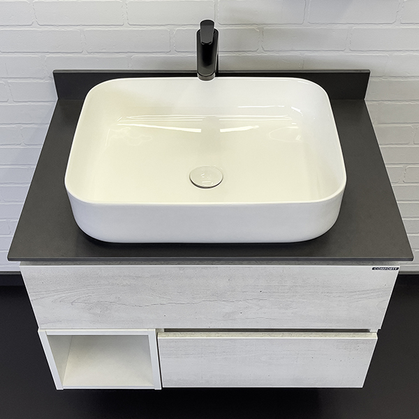Тумба-умывальник Comforty Прага-75 дуб белый с графитовой столешницей с раковиной T-Y9378